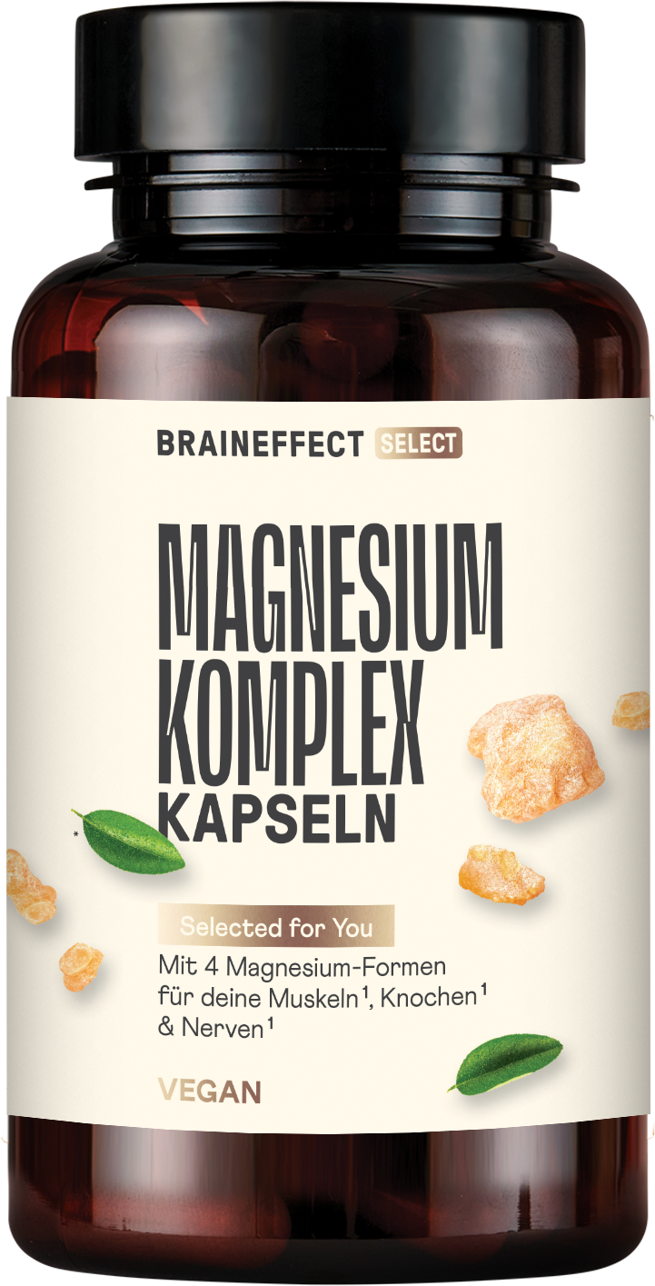 Las cápsulas Magnesium Complex de BRAINEFFECT ofrecen 4 formas diferentes de magnesio en una cápsula: