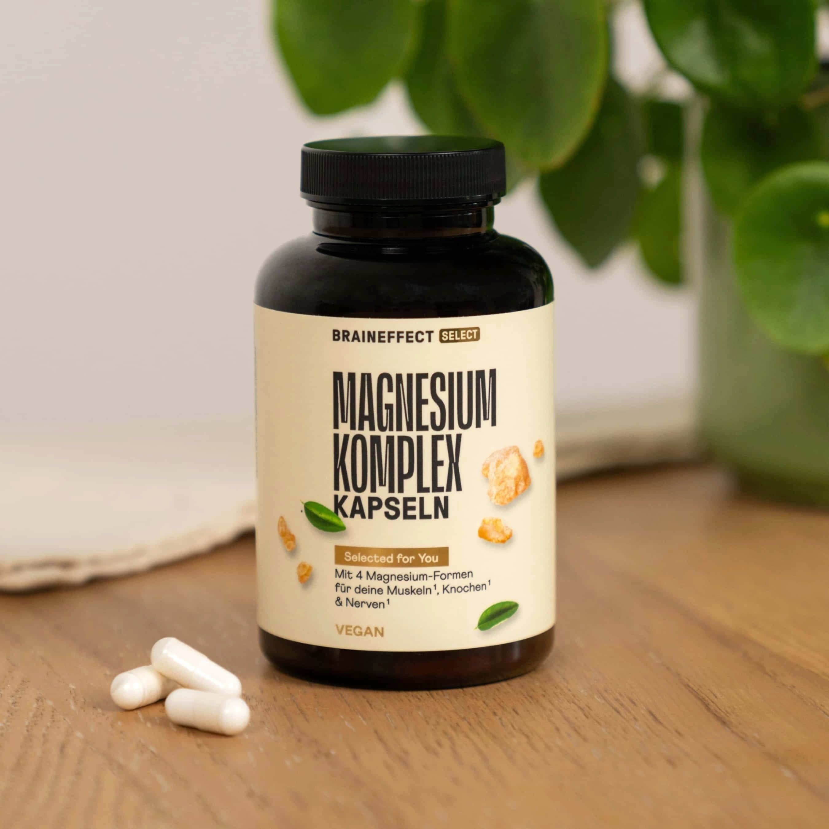Las cápsulas Magnesium Complex de BRAINEFFECT ofrecen 4 formas diferentes de magnesio en una cápsula: