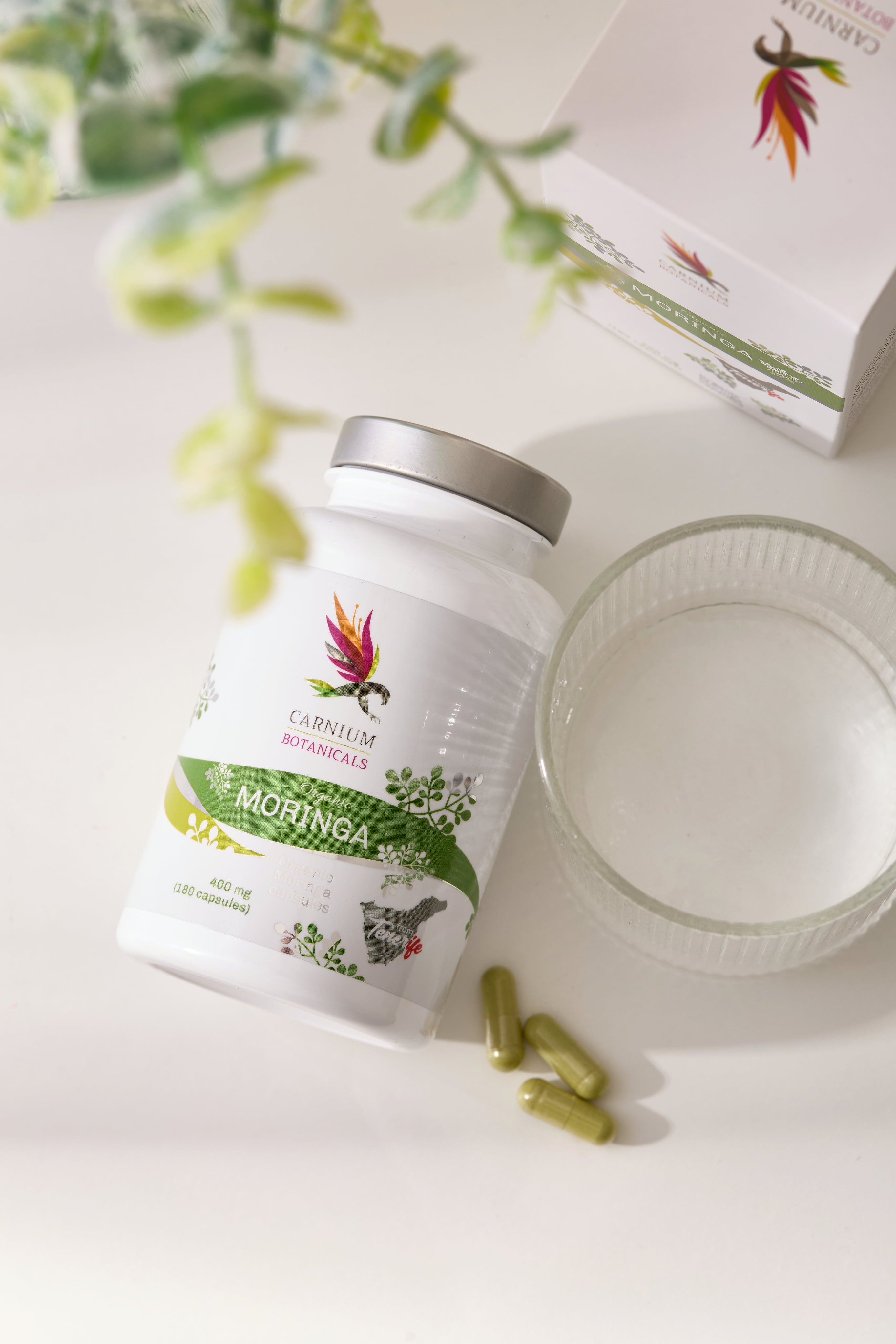 Estas cápsulas de Carnium Botanicals ofrecen apoyo a través de una formulación totalmente natural, a base de plantas. Contienen polvo de hoja de moringa orgánica de alta calidad, son veganas y no contienen conservantes. La moringa es naturalmente rica en vitaminas, minerales y antioxidantes.