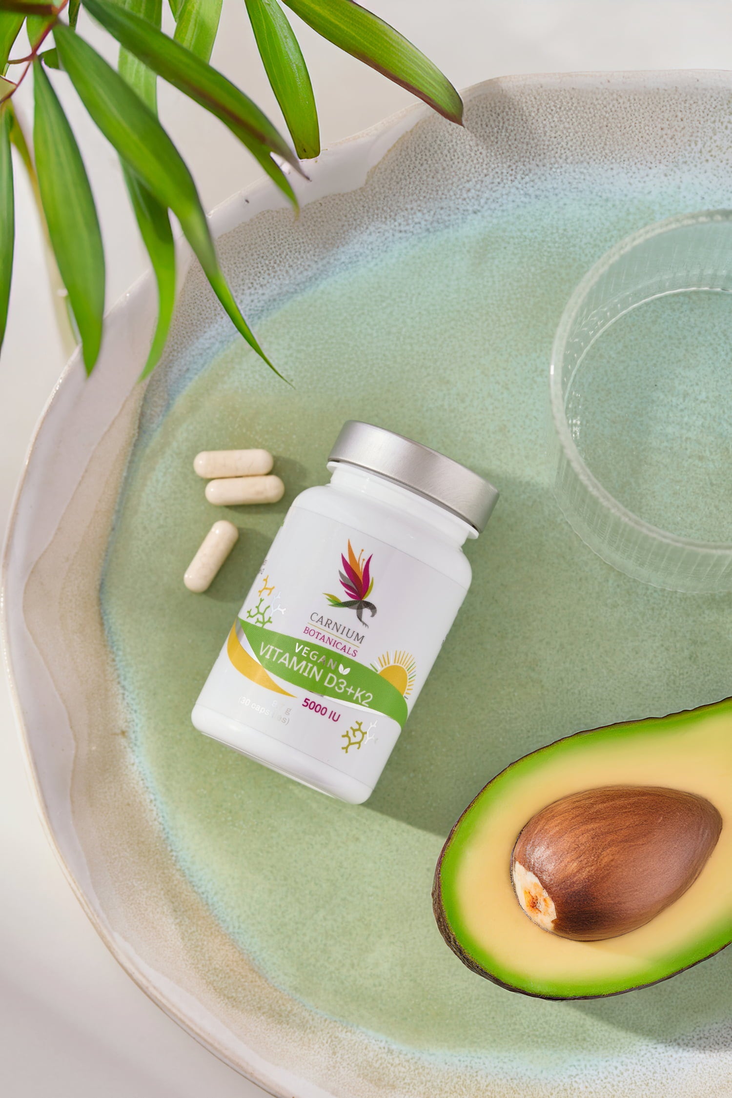 Estas cápsulas de vitaminas de Carnium Botanicals son 100% veganas, ya que contienen vitamina D3 de origen vegetal procedente de líquenes naturales. También están enriquecidas con valiosa vitamina K2 para apoyar mejor importantes funciones corporales. No contienen conservantes, gluten ni lactosa.