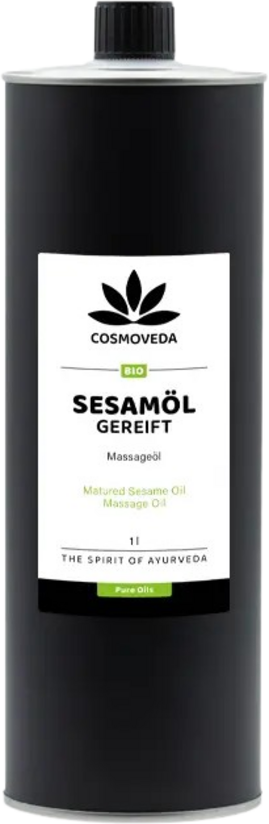 Aceite de sésamo: conocido y utilizado como aceite de masaje en Ayurveda desde hace miles de años. El aceite de sésamo de Cosmoveda se madura siguiendo métodos tradicionales, por lo que es un aceite de masaje ecológico de primera clase, adecuado para masajear todas las partes del cuerpo.