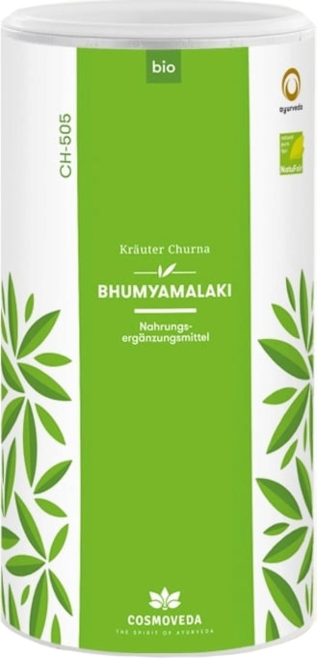Bhumyamalaki - Phyllantus niruri - es una hierba perenne con una altura de 15-30 cm, hojas pequeñas y flores amarillas, cuyos frutos, brotes, semillas, hojas y corteza se utilizan en la dieta ayurvédica. El polvo de toda la planta seca, que se muele fina y suavemente (por debajo de 40 °C), proviene de los propios proyectos orgánicos y de comercio justo de la India y Sri Lanka de Cosmoveda.
