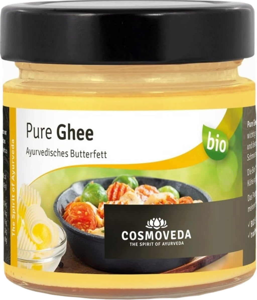 Ghee es una parte importante de la cocina ayurvédica. Gracias a su método de producción especial, el ghee se puede conservar sin necesidad de refrigeración. Ideal para cocinar, freír, hornear, estofar y guisar. Especias tradicionales se cocinan brevemente en la cocina ayurvédica india antes de utilizarse en ghee para desarrollar su sabor.