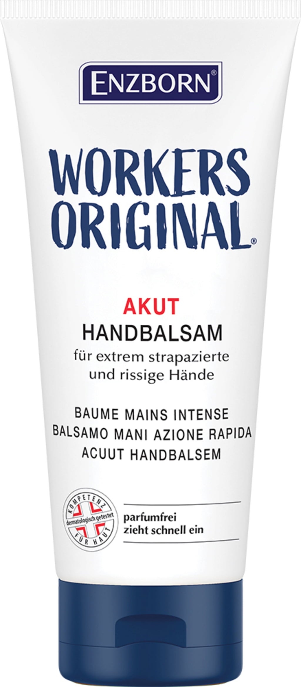 El Bálsamo de Manos Workers Original® Acute de ENZBORN cuida las manos agrietadas y estresadas y las protege de daños mayores gracias a su efecto reparador. La piel de las manos se regenera suavemente y recupera su espléndida elasticidad. La fórmula sin perfume ni parabenos hace que la crema de manos sea especialmente suave con la piel.
