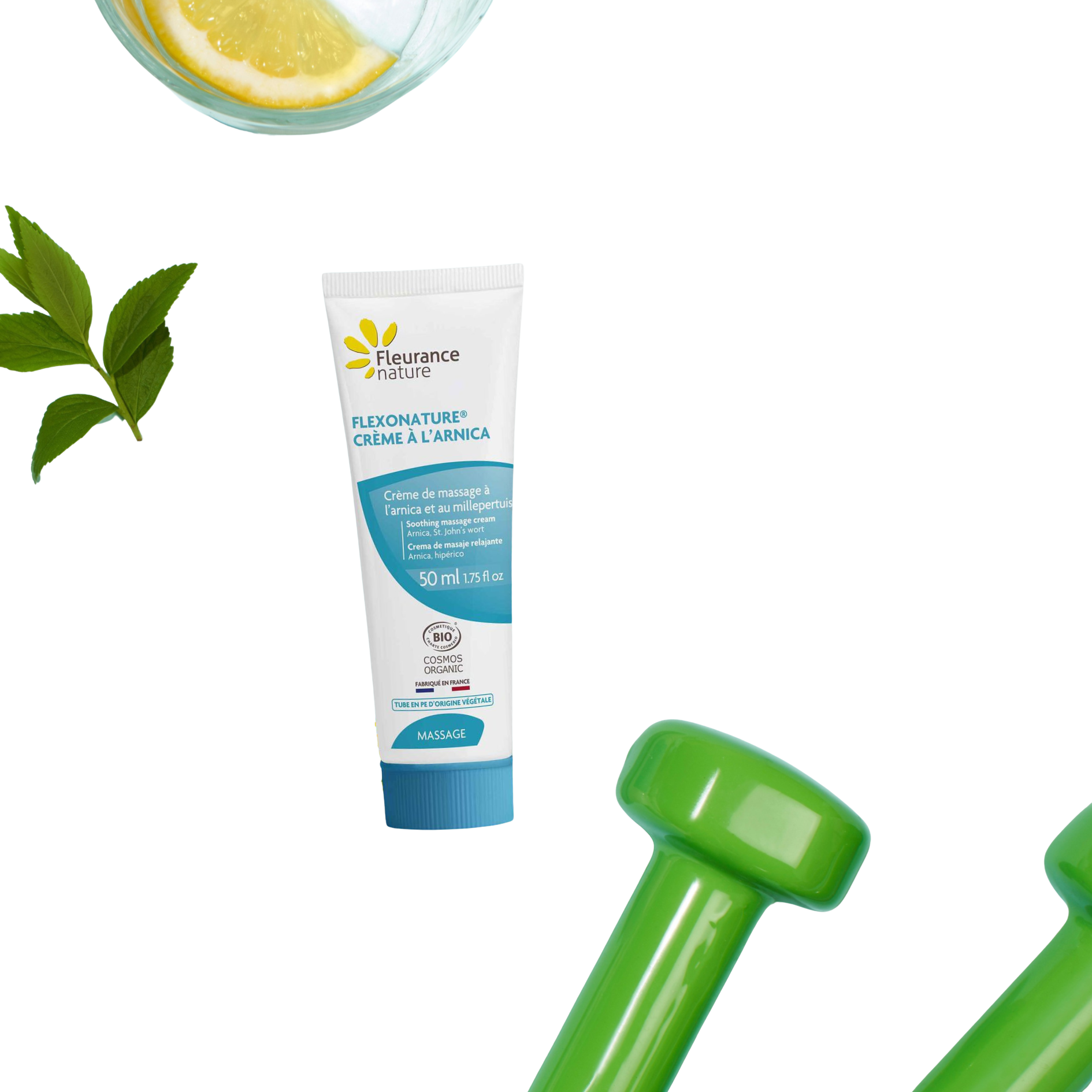 La Crema de Masaje Calmante FLEXONATURE® es la ayuda ideal para pequeños dolores y molestias o después de hacer deporte. Une una gran cantidad de ingredientes activos naturales, como árnica, hierba de San Juan, aciano y aceites esenciales seleccionados de manera óptima para proporcionar una sensación agradable.