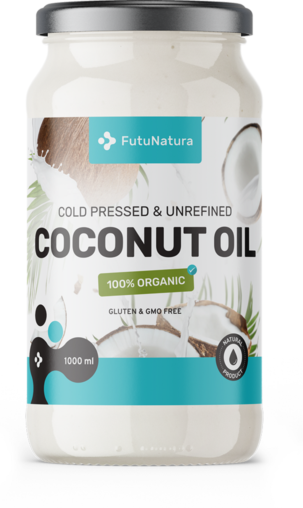 Descubre el aceite de coco 100 % natural de la marca FutuNatura con certificación ecológica. Este aceite se obtiene mediante prensado en frío de cocos frescos (Cocos nucifera) procedentes de Sri Lanka. Gracias a este delicado método, se conservan de la mejor manera posible el sabor natural y el fino aroma del aceite.