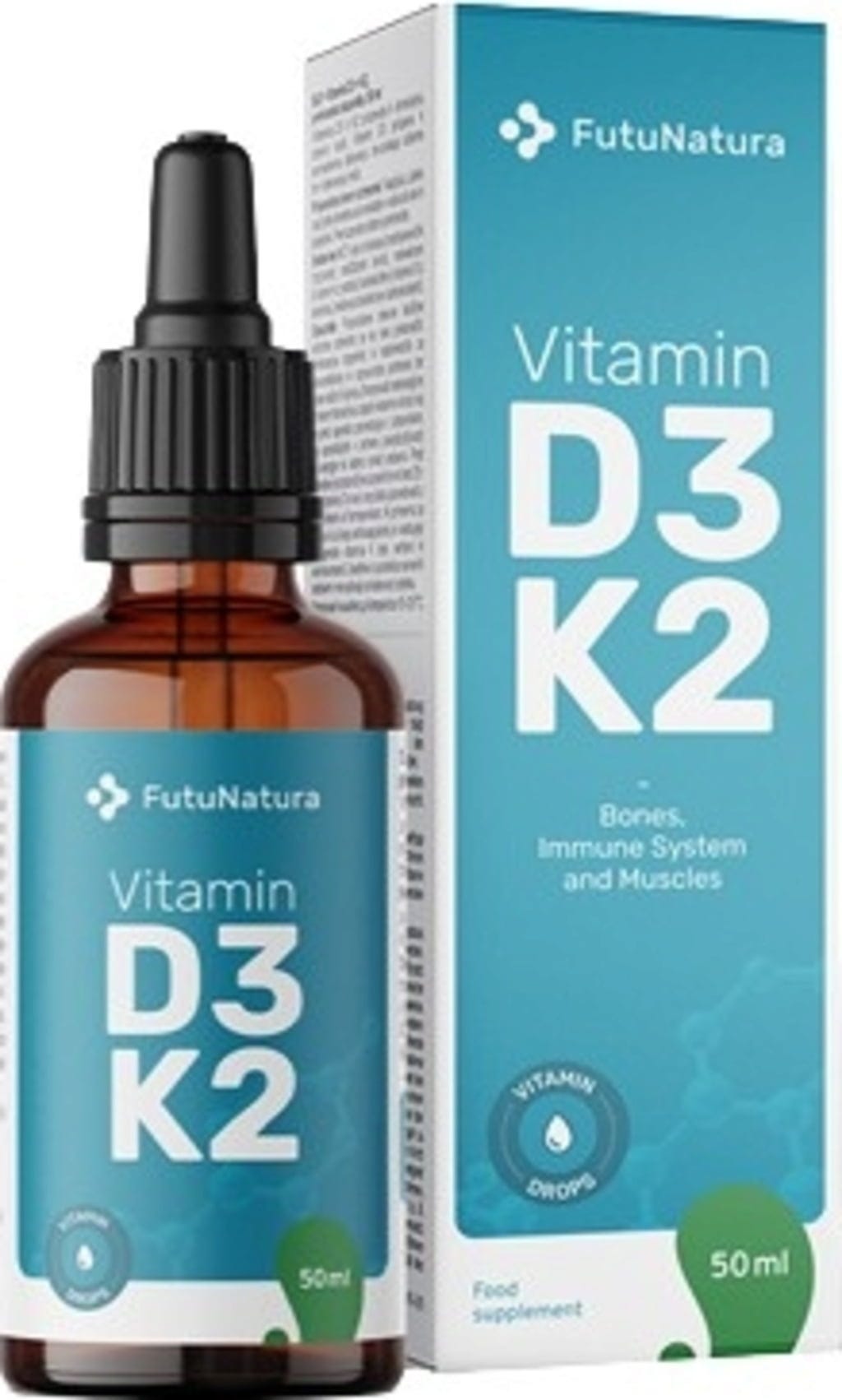 Gotas que aportan vitaminas D3 y K2. La vitamina D contribuye al mantenimiento de huesos normales. La vitamina K2 se presenta en forma de menaquinona-7 (MK-7). Además, las gotas están enriquecidas con aceite MCT de coco. El práctico frasco cuentagotas permite una dosificación sencilla.