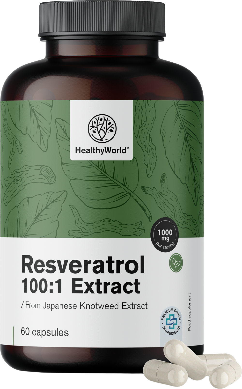 HealthyWorld Resveratrol 1000 mg - Extracto 100:1, 60 cápsulas