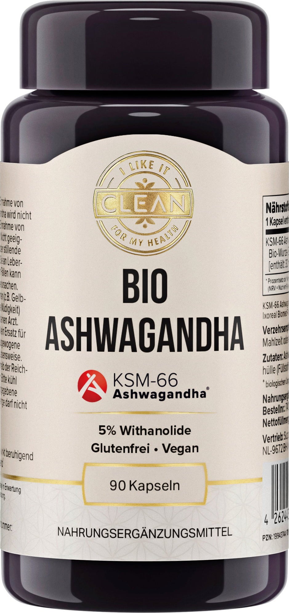 i like it clean Extracto de Raíz de Ashwagandha Bio 600 mg, 90 cápsulas