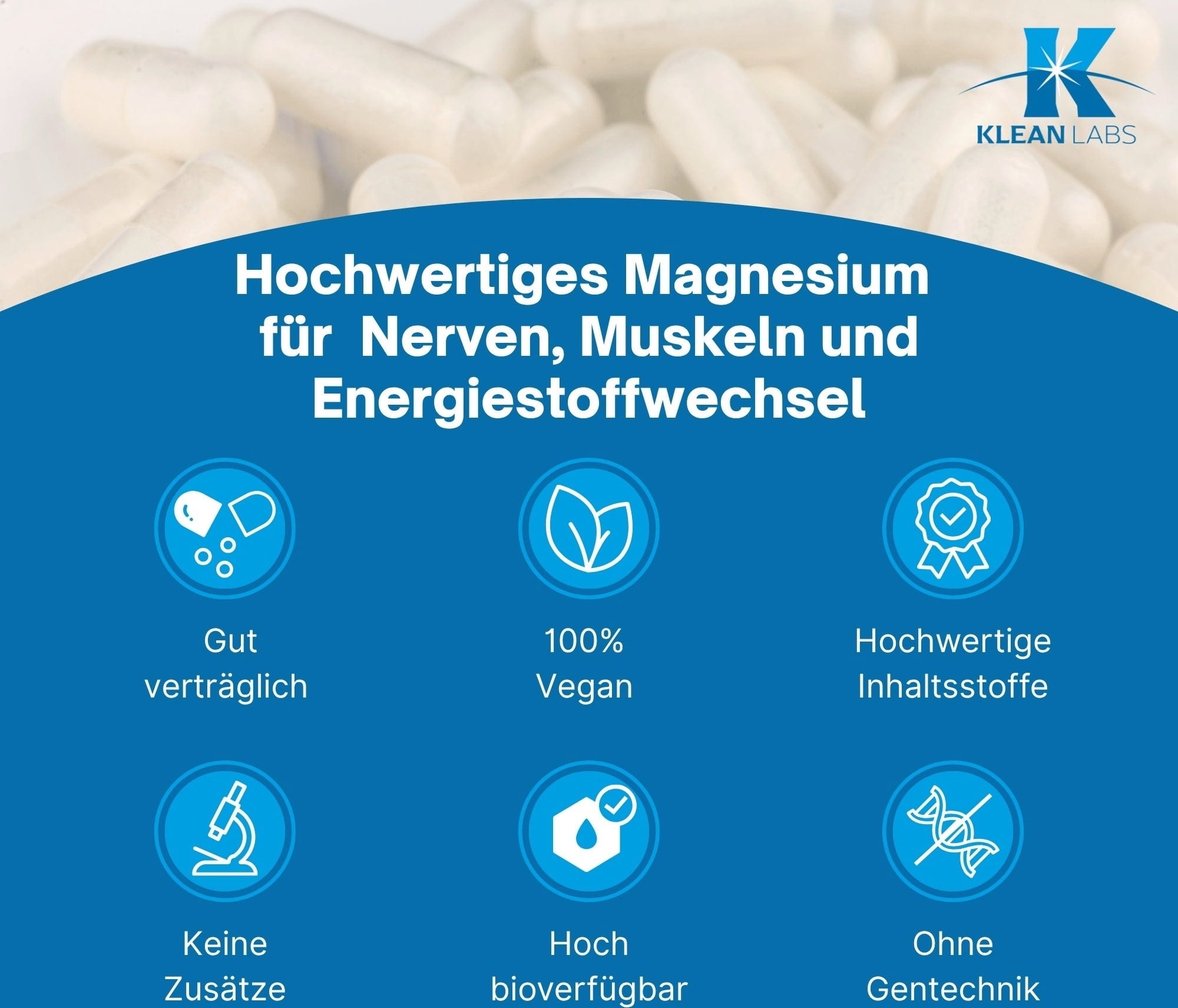 El citrato de magnesio biodisponible de Klean Labs es adecuado como complemento dietético diario y no contiene gluten, lactosa ni soja. Una cápsula contiene 150 mg de citrato de magnesio.