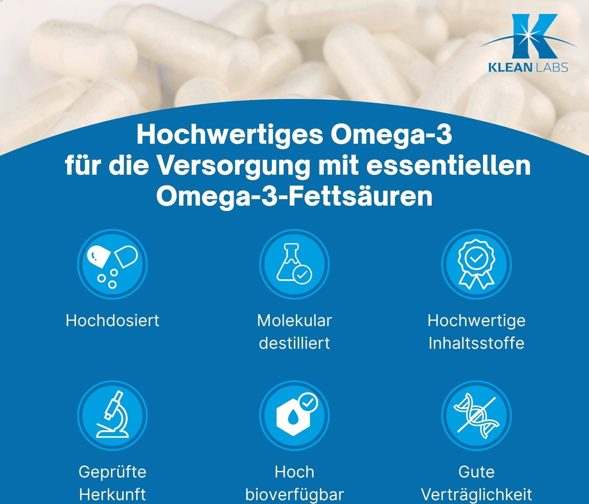 Las cápsulas blandas de aceite de pescado con omega-3 de Klean Labs contienen aceite de pescado, que es una fuente natural de ácidos grasos omega-3. Cada cápsula blanda proporciona 390 mg de ácidos grasos omega-3 (en su forma natural de triglicéridos), incluidos 192 mg de ácido eicosapentaenoico y 120 mg de ácido docosahexaenoico.