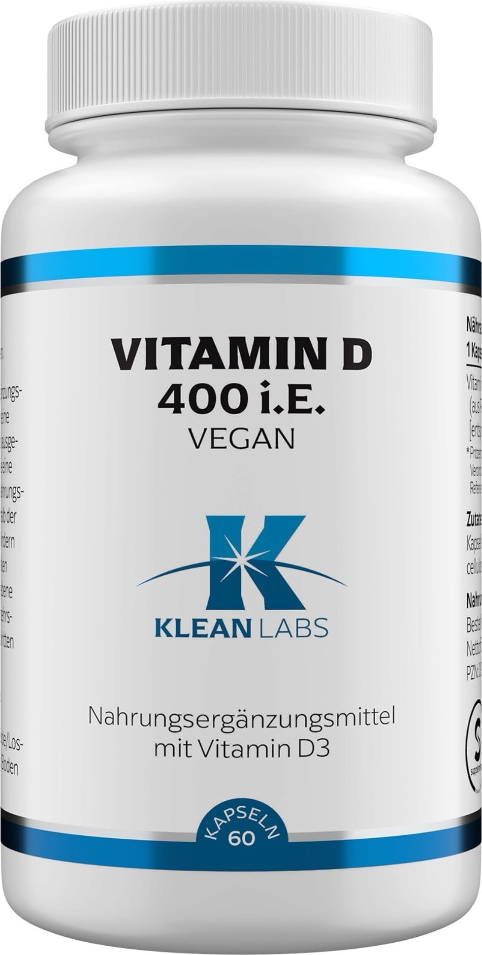 KLEAN LABS utiliza colecalciferol de extracto de liquen para la formulación vegana de Vitamina D 400 U.I. Envueltas en una cápsula vegetal, las cápsulas veganas son ideales para una dieta basada en plantas y sin carne.