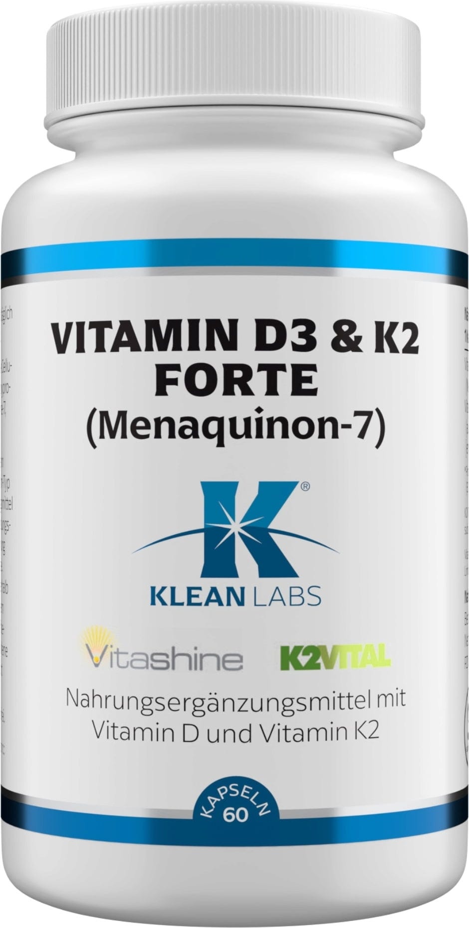 KLEAN LABS Vitamina D3 y K2 Forte Menaquinona, 60 cápsulas