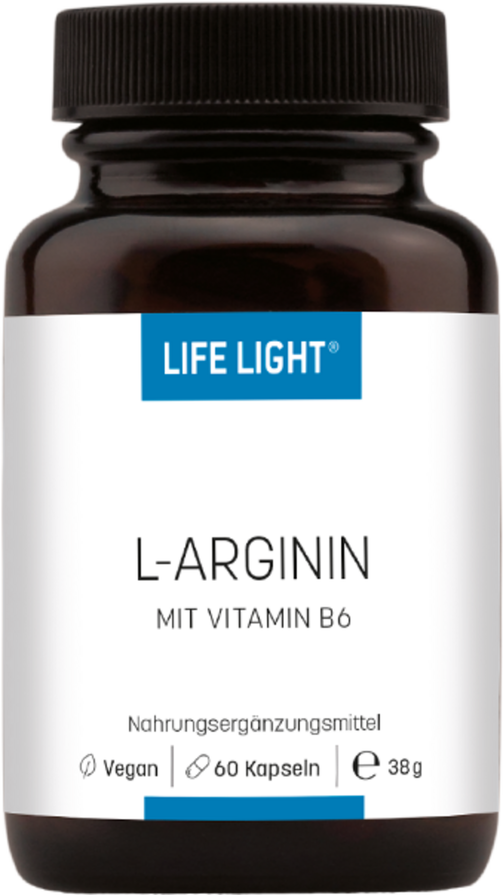 Este producto de Life Light ofrece L-arginina, un aminoácido semi-esencial en su forma pura, combinado con vitamina B6.