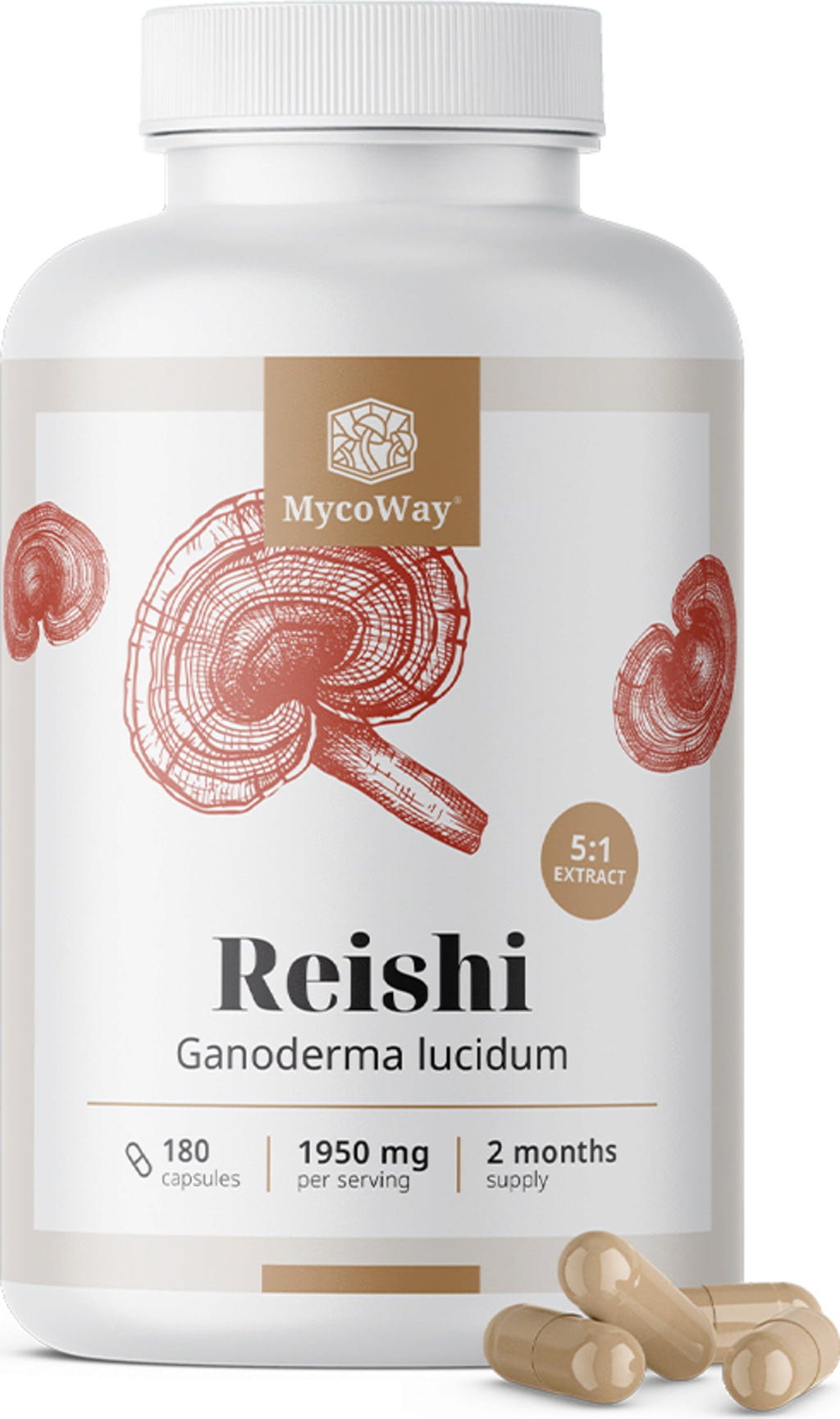 MycoWay Reishi 1950 mg - Extract 5:1, 180 cápsulas