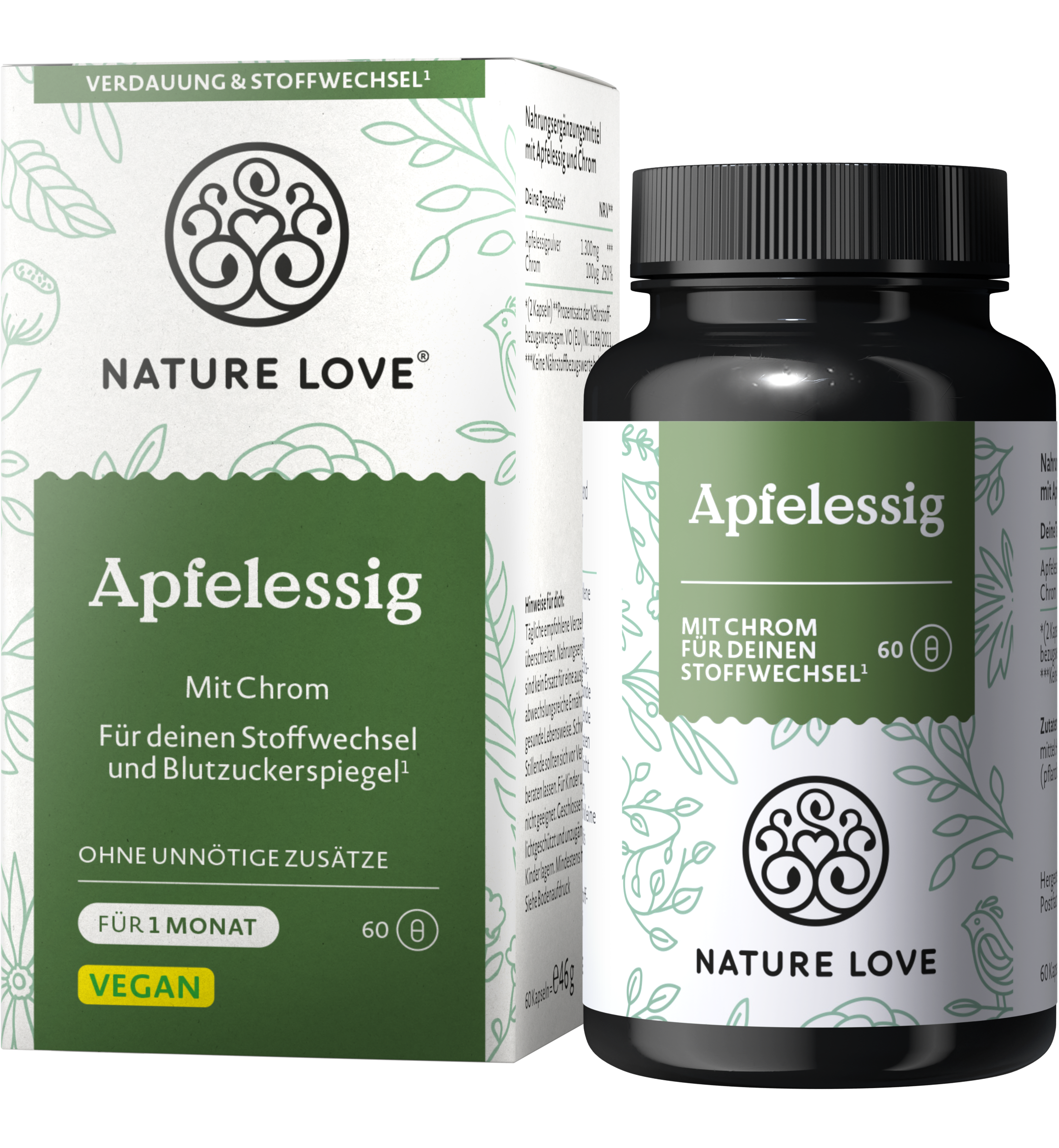 El vinagre de manzana es un remedio casero tradicional que se utiliza en muchas ocasiones. Ya Hipócrates e Hildegard von Bingen apreciaban sus propiedades. Las cápsulas de Nature Love contienen vinagre de manzana en polvo y cromo de alta calidad y alta dosis, pero tienen un sabor completamente neutro. Además, la fórmula es 100 % vegana y no contiene aditivos innecesarios.