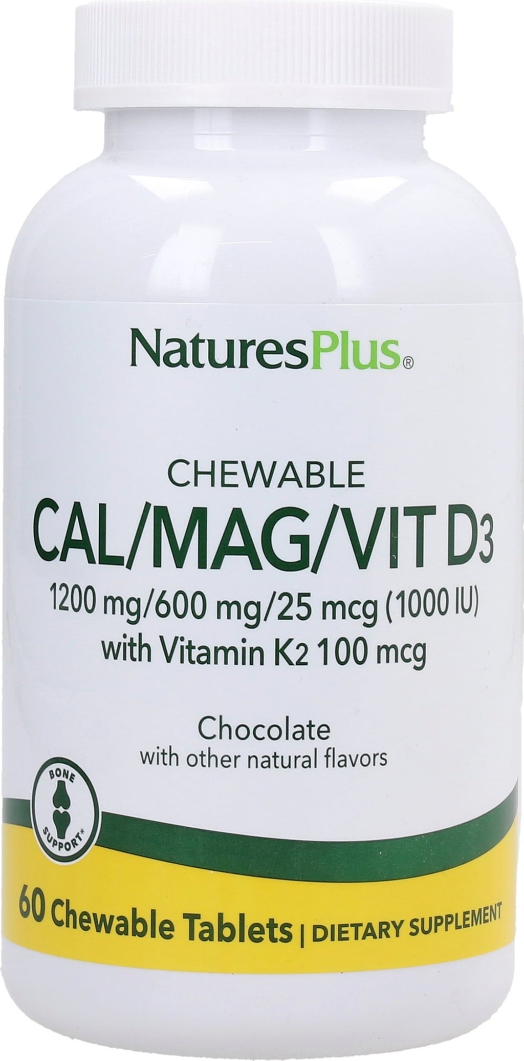 Nature's Plus Cal/Mag/Vit. D3 con Vit. K2 en Comprimidos Masticables, Chocolate (60 comprimidos masticables)