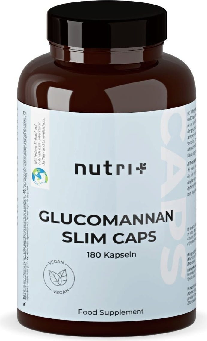 nutri+ Glucomannan Slim Caps combina glucomanano natural derivado del konjac con cromo y vitamina B12.
