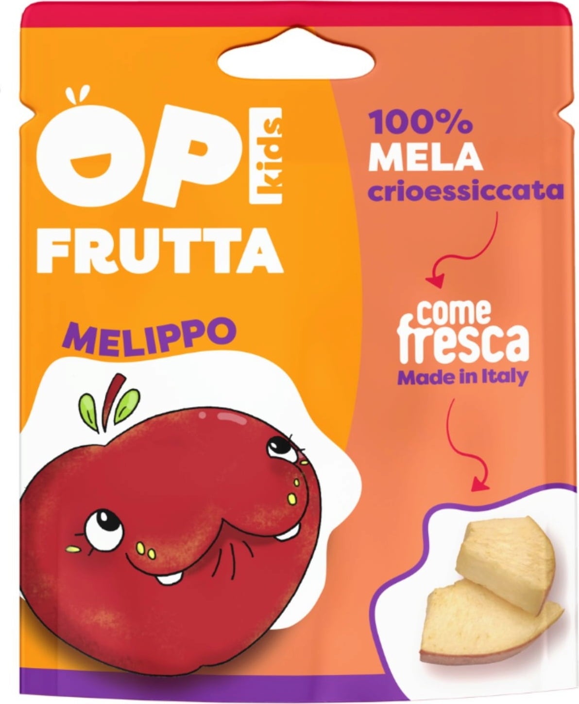 Mela OPI Kids es un snack crujiente y dulce, pensado para los más pequeños, pero del que también disfrutan los adultos. Gracias al suave proceso de liofilización, cada trozo de manzana conserva intacto su sabor, ofreciendo un descanso natural y sabroso. Sin conservantes ni azúcares añadidos, sólo el auténtico placer de la fruta.