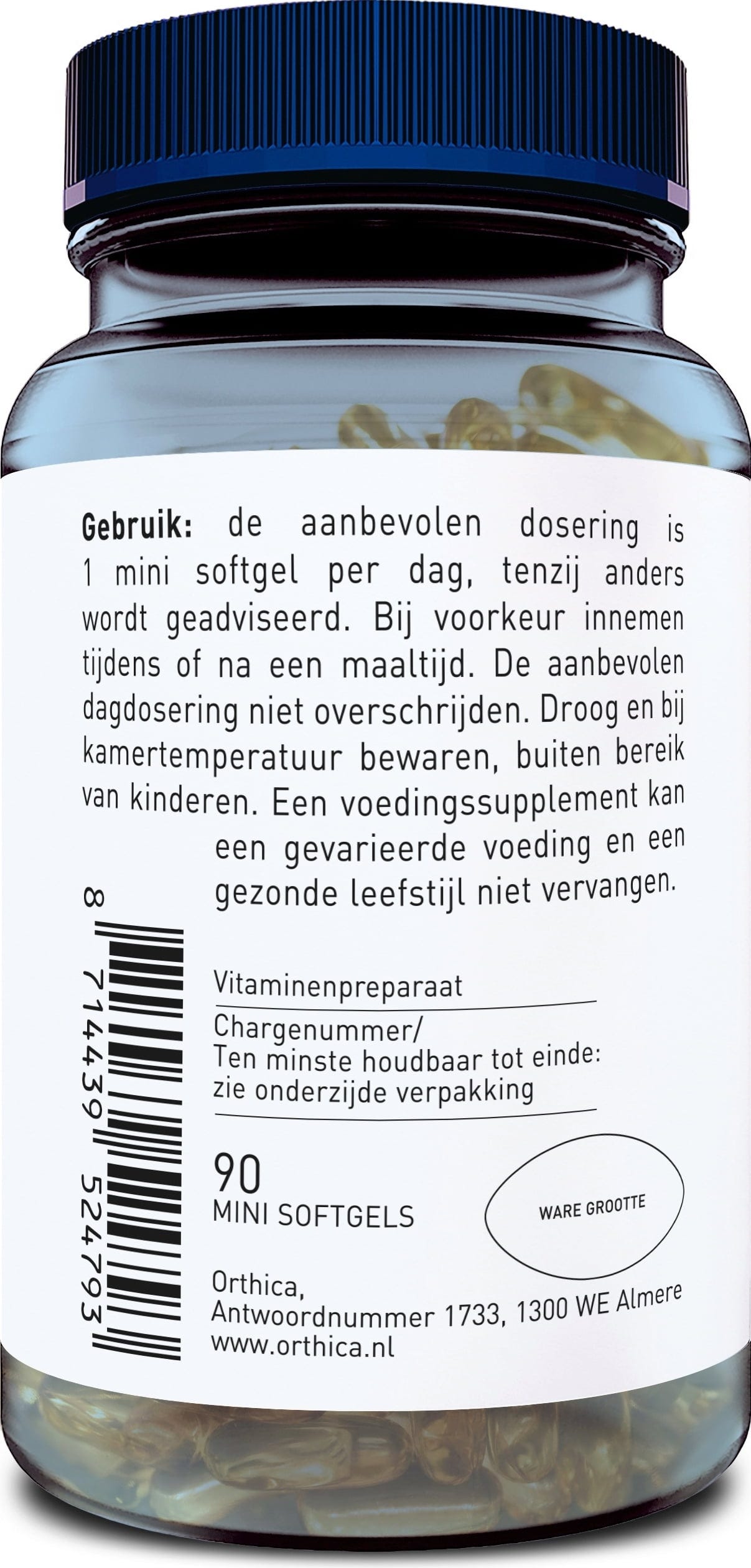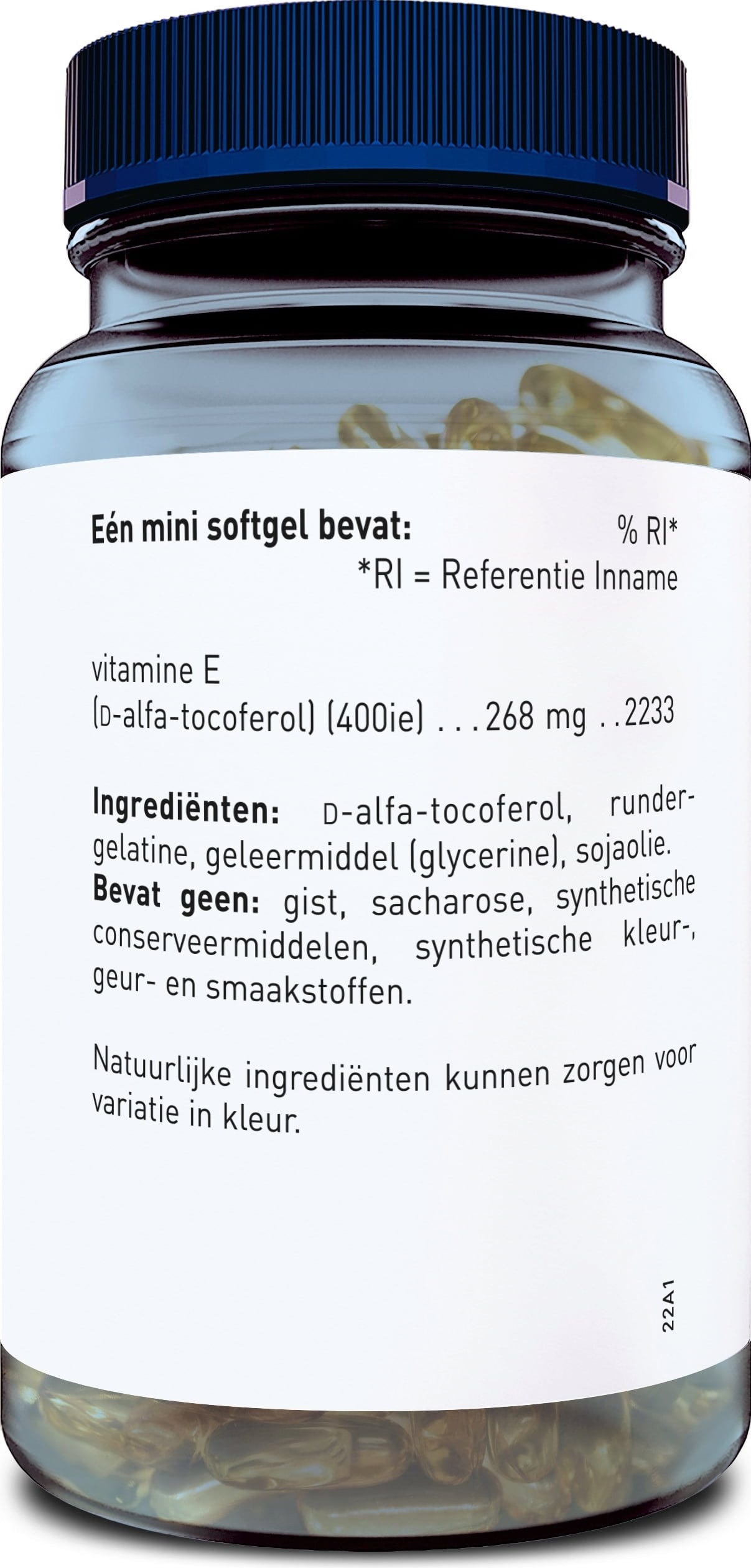 Con Orthica E-400 dispone de un complemento alimenticio con vitamina E en su forma natural, D-alfa-tocoferol. La vitamina E es una vitamina esencial liposoluble. Una cápsula contiene 268 mg de α-TE, una dosis elevada. La vitamina E contribuye a la protección de las células contra el estrés oxidativo.
