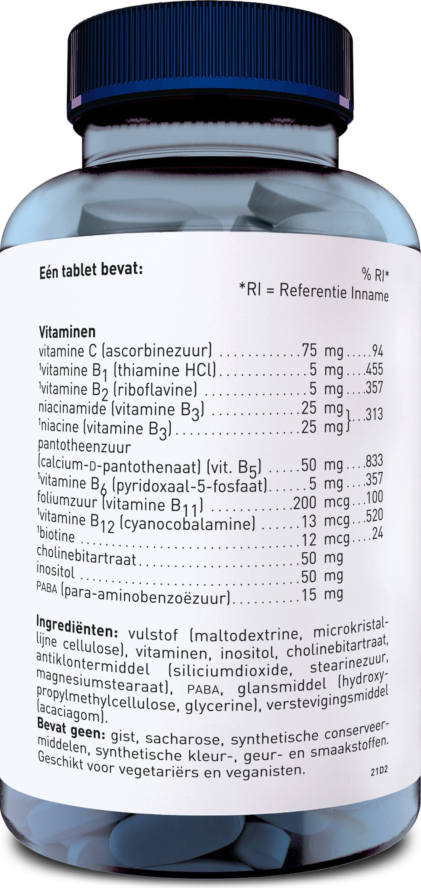 Este complejo vitamínico B combina las vitaminas B1, B2, B3, B5, B6, biotina, ácido fólico y vitamina B12 con vitamina C, colina, inositol y PABA. La vitamina C contribuye al metabolismo energético normal y a la reducción del cansancio y la fatiga. Las vitaminas B B6, B12 y el ácido fólico también contribuyen a la reducción del cansancio y la fatiga, al funcionamiento normal del sistema nervioso y a la formación de glóbulos rojos. Además, las vitaminas B contenidas favorecen el funcionamiento normal del sistema inmunitario.