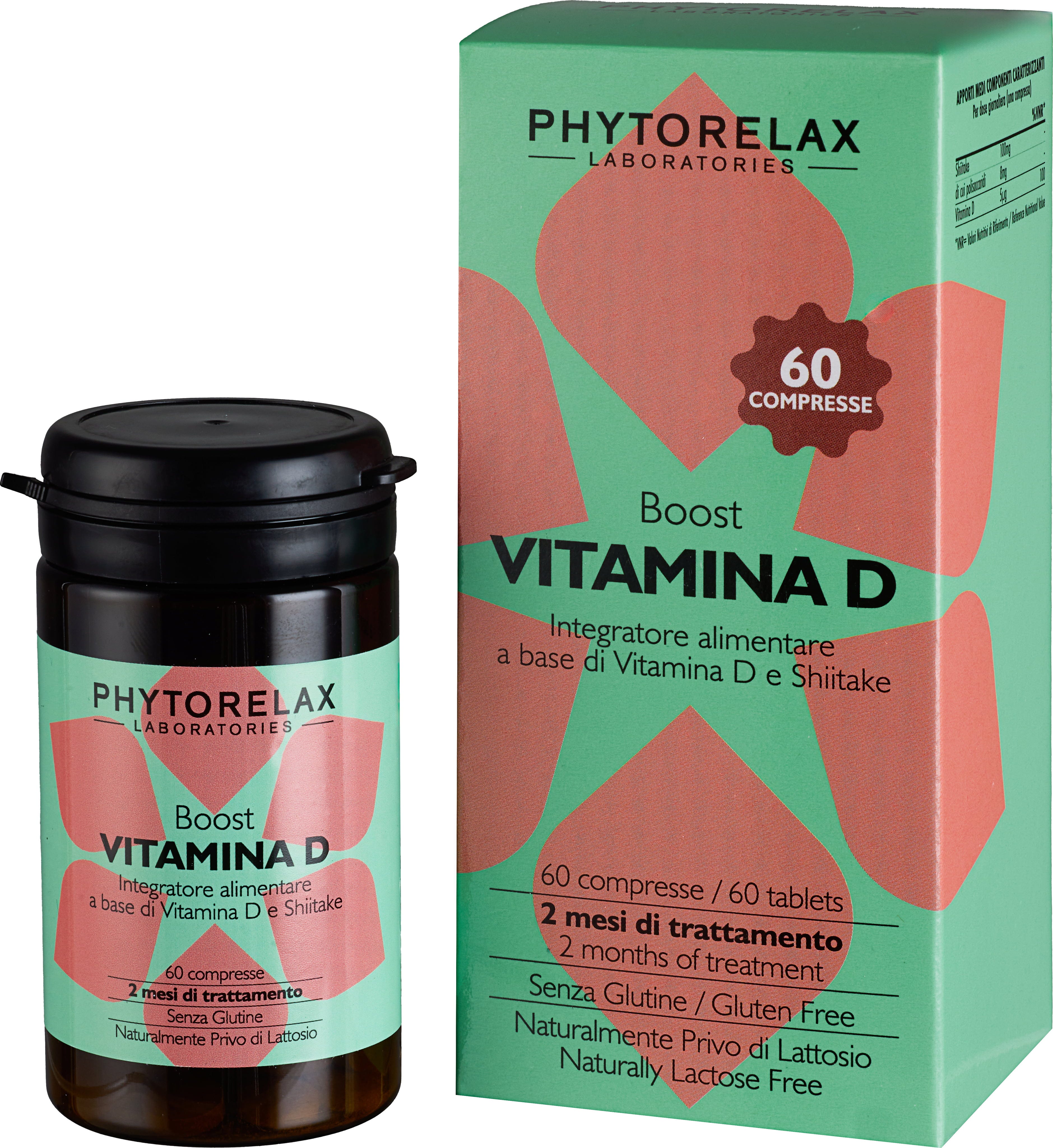 Boost Vitamina D de Phytorelax con shiitake es un valioso aliado consciente para tu día a día. La combinación de vitamina D clásica y extracto natural de shiitake hace que este suplemento sea un complemento práctico y bien estudiado para tu rutina, fácil de tomar y sin elementos superfluos. El shiitake es un hongo cultivado con una larga tradición en la alimentación, utilizado aquí como materia prima de origen vegetal dentro del producto. La formulación es esencial y bien definida, pensada para integrarse sin dificultad en tu programa diario, ideal para quienes aprecian las composiciones claras y transparentes.