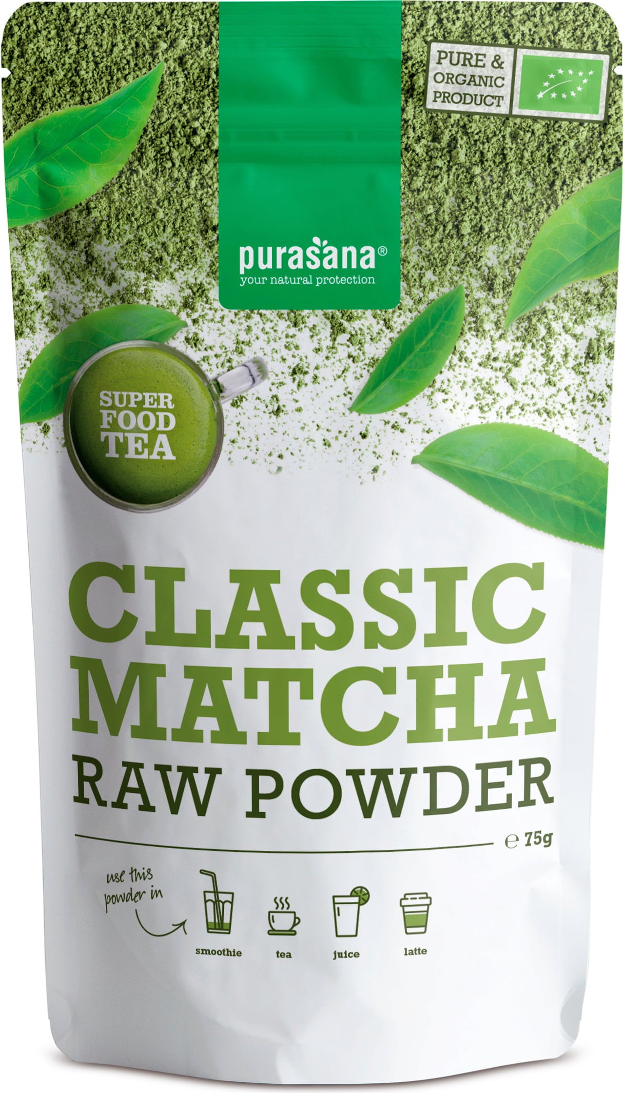 ¡Sumérgete en el mundo del té verde matcha con este polvo de Purasana! Para hacer el producto, el té verde matcha se cosecha cuidadosamente, se cuece al vapor y se muele hasta obtener un polvo fino. Con su característico color verde claro, el polvo de matcha orgánico es el sustituto perfecto del café.