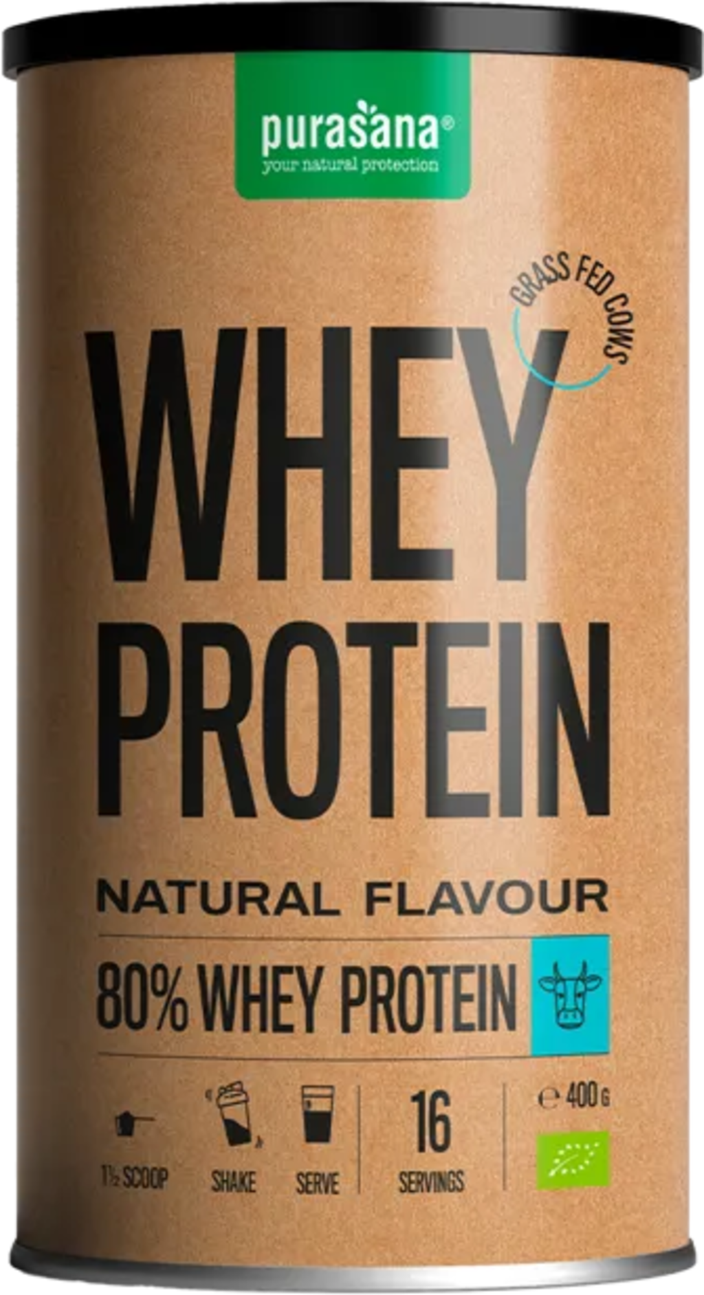 Las proteínas de suero de leche bio de Purasana, obtenidas de la leche de vacas de granjas orgánicas, son de la más alta calidad. El 60% del forraje que se utiliza en las fincas es a base de pasto, trébol y heno. El alimento restante y el cuidado de las vacas cumplen con estrictos estándares biológicos.