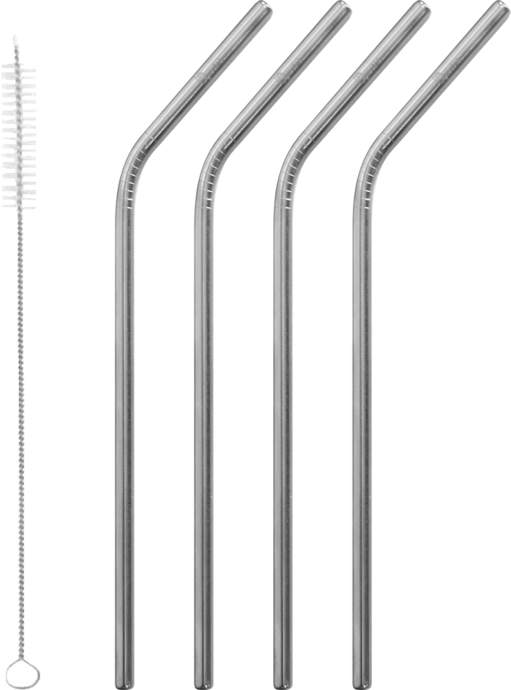 Qwetch Pajita de Acero Inoxidable - Curva, 4 piezas