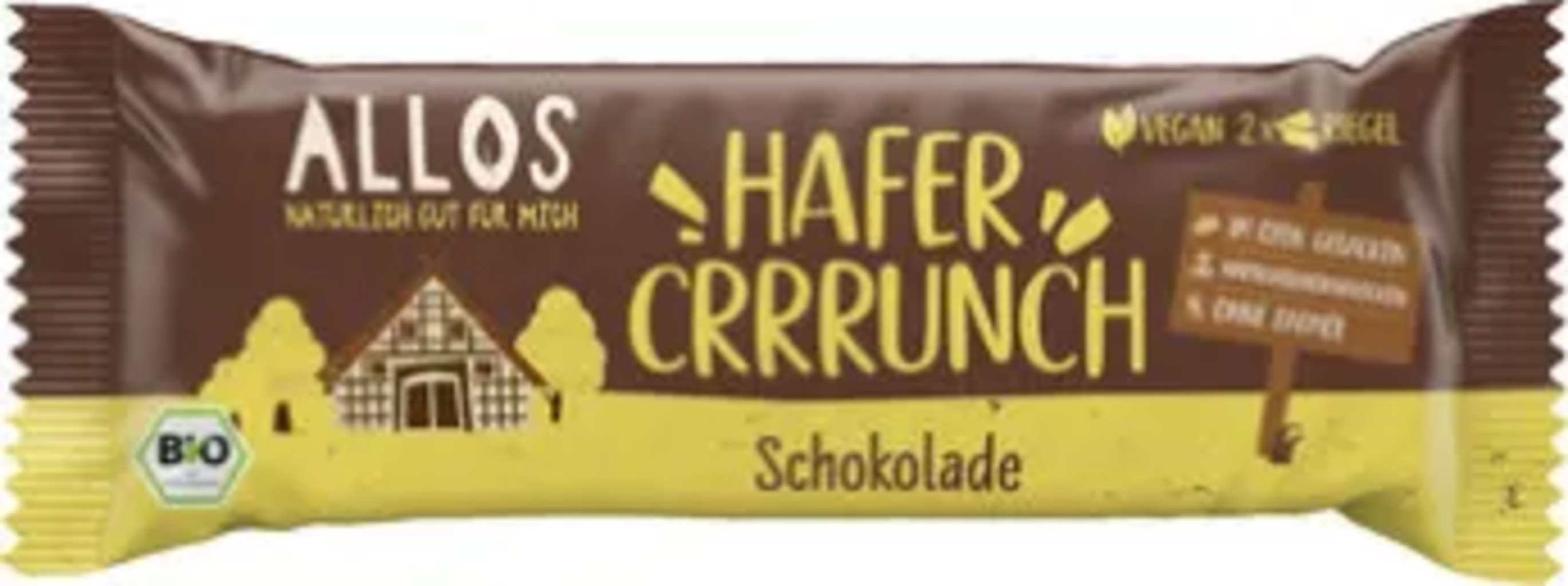 Dedicada a los amantes del chocolate, la barrita ALLOS Crrrunch está elaborada con fina avena integral a la que se añaden crujientes pepitas de cacao y chocolate negro. Cocida al horno y elaborada sin aceite de palma, esta barrita es ideal para llevarla consigo para un descanso crujiente.