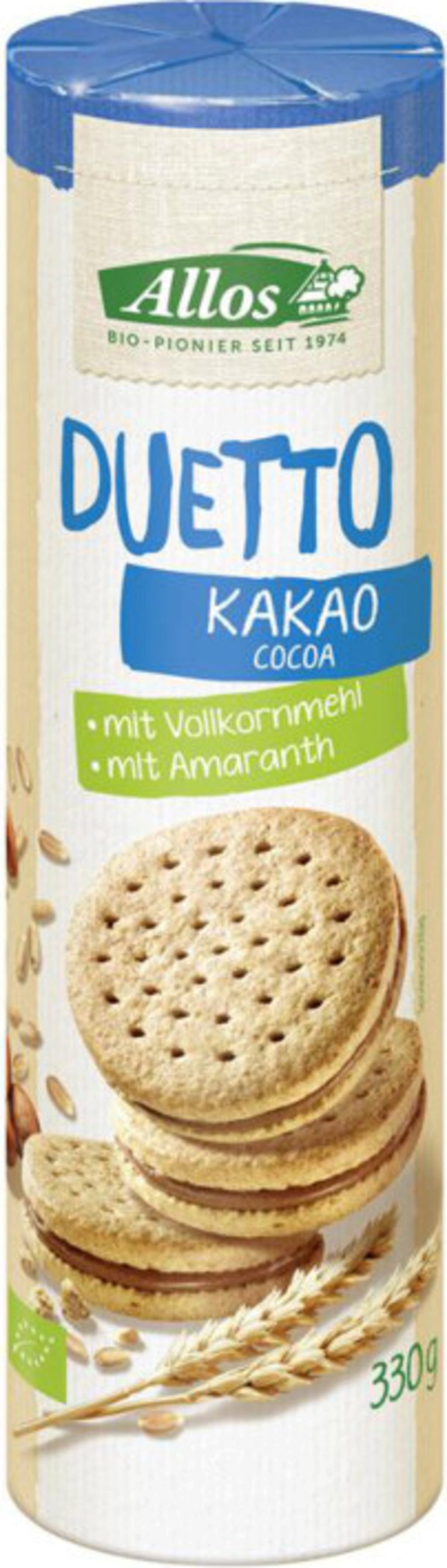 Crujientes galletas dobles integrales rellenas de crema de cacao. La receta se ha refinado con amaranto, sal marina y vainilla Bourbon. Perfectas para un tentempié sobre la marcha.