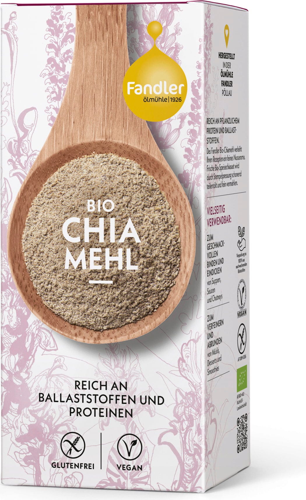 Esta harina de chía bio le dará a tus panes, pasteles y masas aroma a delicioso a nuez. Es rica en proteínas vegetales, fibra y ácidos grasos omega 3. En la cocina vegana también se puede utilizar como sustituto al huevo.