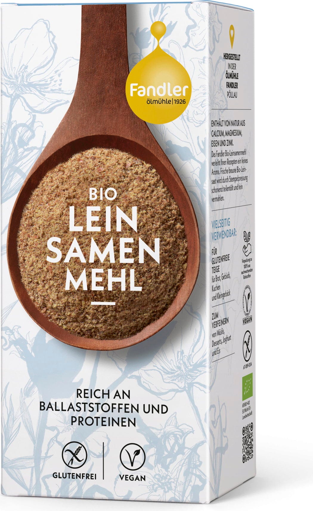 Harina de linaza bio con ácidos grasos omega 3 y proteínas vegetales. Ideal para hacer masas, pasteles, panes y pasteles sin gluten. Por supuesto, la harina también se puede utilizar para refinar platos.