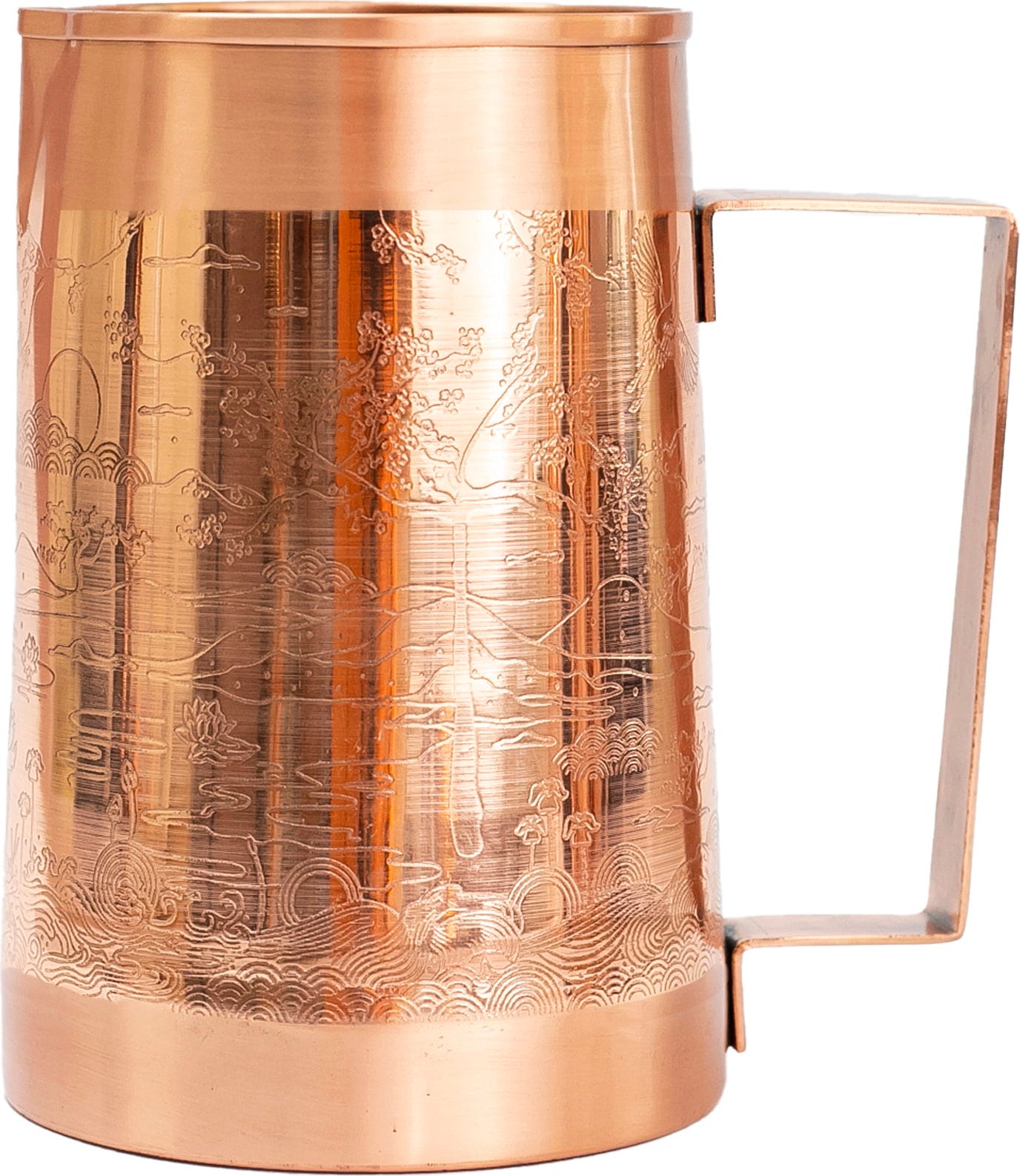 Esta jarra de cobre es ideal para servir agua corriente o, alternativamente, se puede transformar en un elegante florero. Está hecho a mano en la India y, por lo tanto, combina el diseño moderno con la artesanía tradicional. Recubierto por fuera con un esmalte de grado alimenticio y dejado natural por dentro, la jarra devuelve agua naturalmente alcalina.