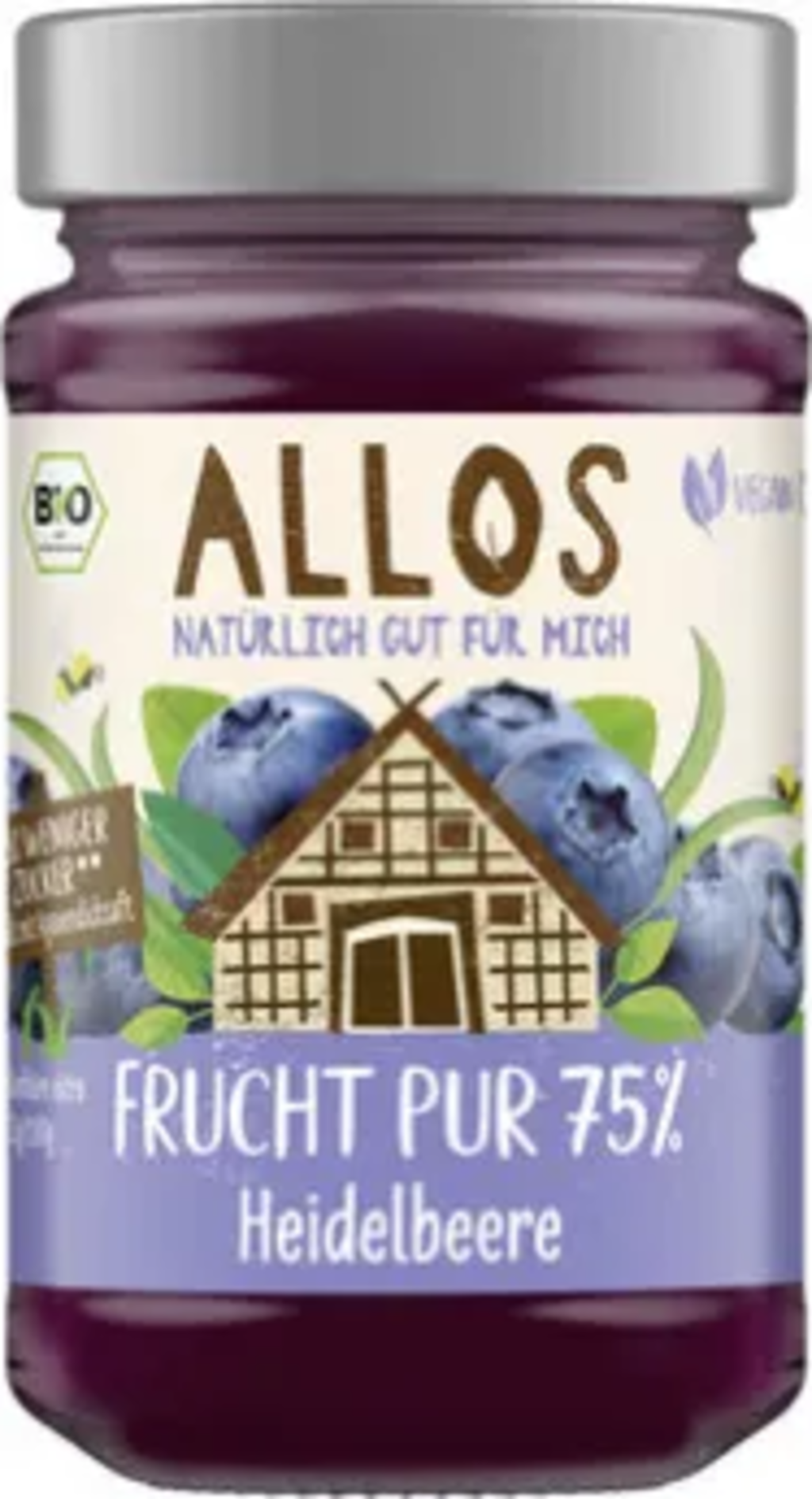 Una deliciosa creación de ALLOS para los amantes de la fruta. Para la crema para untar Frutta Pura 75% se seleccionan los mejores arándanos orgánicos, se recogen a mano y se procesan delicadamente con la adición de sirope de agave. Una receta vegana que contiene un 57% menos de azúcar que otras compotas de frutas.
