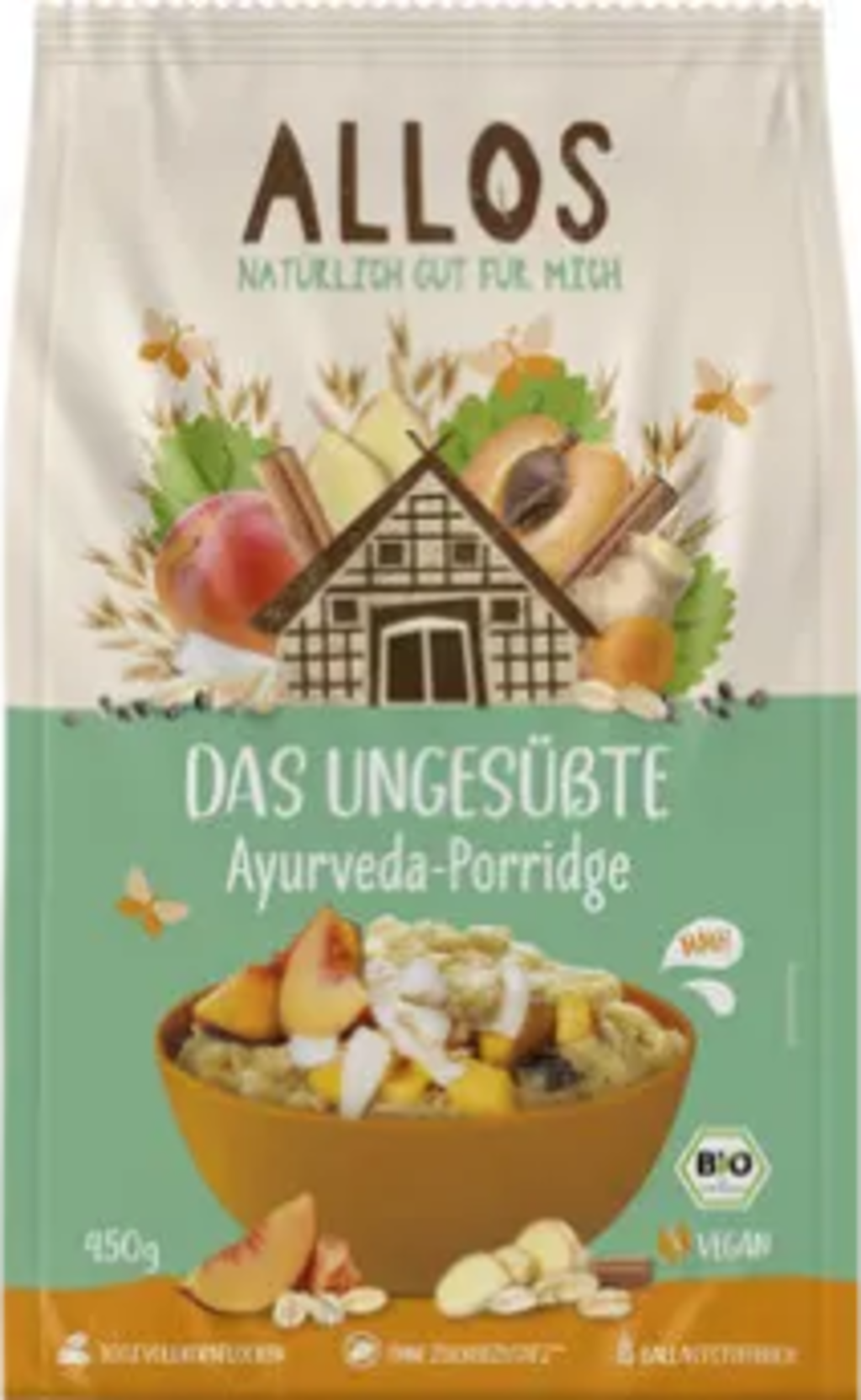 Un buen comienzo del día está garantizado con este delicioso porridge enriquecido con especias típicas del Ayurveda. La presencia de especias como la cúrcuma, el jengibre y la canela aportan a la mezcla un maravilloso sabor, sin necesidad de añadir otros azúcares. El porridge Ayurveda de ALLOS está elaborado 100 % con copos de cereales integrales y, por lo tanto, es rico en fibra.