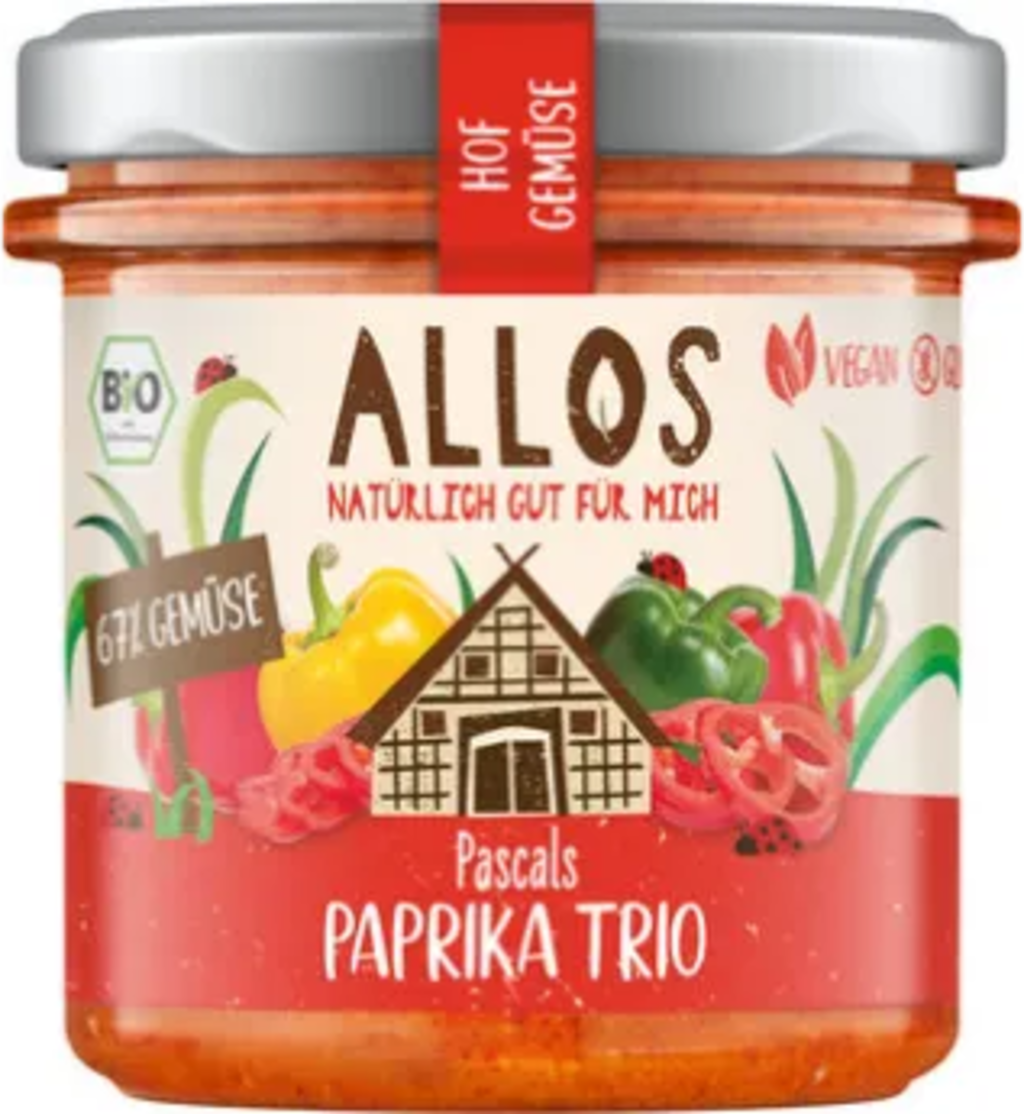 Una crema untable apta para cualquier momento del día. Con un 67 % de verduras, el trío de pimientos de Pascal impresiona por su sabor pleno e intenso. El producto es vegano y sin gluten.