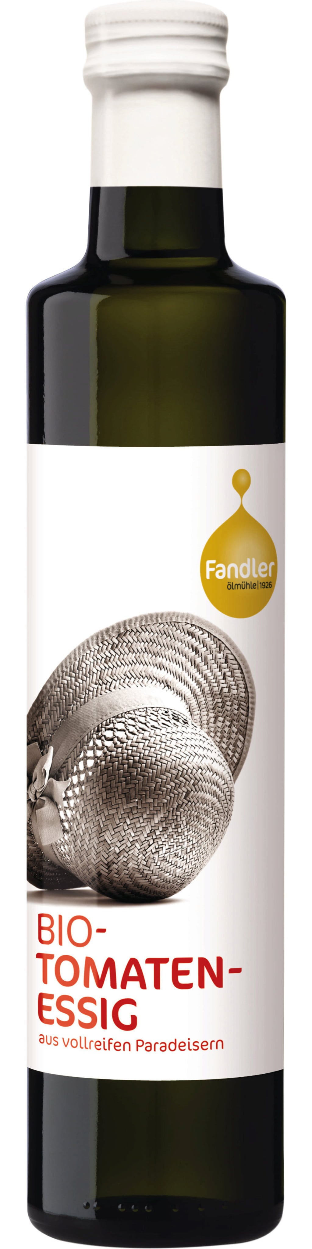 Este vinagre con sabor a fruta se elabora a través del fermentado del jugo recién exprimido de tomates maduros. Este vinagre preserva el sabor aromático de los tomates y es adecuado para refinar platos de la cocina mediterránea con carne y pescado, así como para marinar verduras como el calabacín, pimientos, alcachofas, etc. También es ideal para darle una nota afrutada a ensaladas verdes y queso fresco, y para salsas.