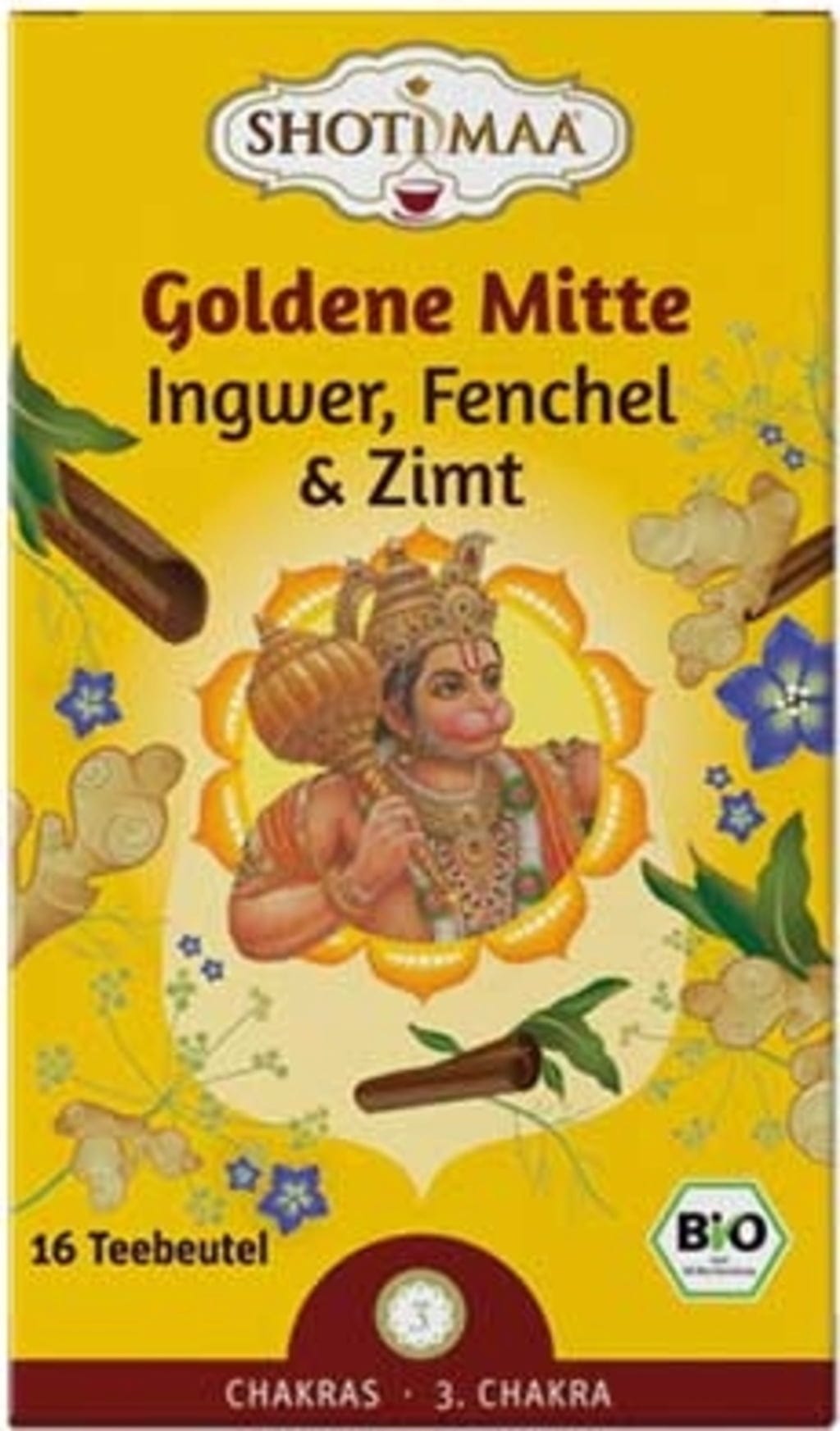 Experimenta la mezcla de jengibre, hinojo y canela con esta composición de Shoti Maa, que desprende una agradable sensación de calidez. Las preciadas cáscaras de cacao, el anís y el cardamomo aportan a la mezcla una textura fina y especiada, mientras que la cúrcuma y el clavo aportan un profundo aroma. Esta receta está dedicada a la filosofía del tercer chakra y te invita a sentir conscientemente tu fuerza interior y carisma.