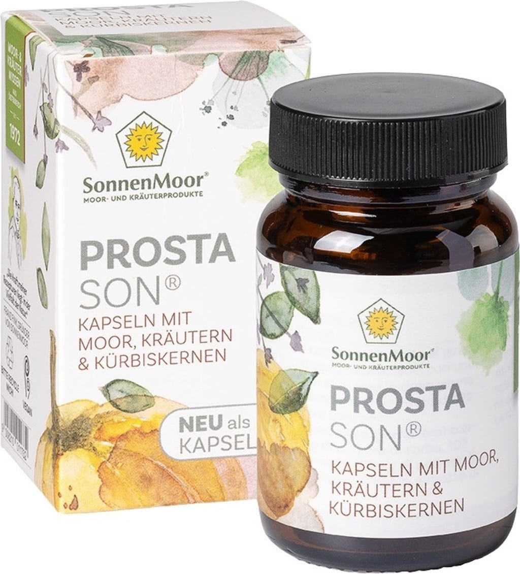 ProstaSon es un producto natural desarrollado específicamente por la empresa familiar austriaca SonnenMoor. La fórmula combina turba seca en polvo de la turbera Leopoldskron de Salzburgo con una selección de componentes vegetales. La turba contiene ácidos húmicos naturales, además de minerales y oligoelementos como hierro, calcio y magnesio. Esta base se completa con un extracto de semillas de calabaza de alta calidad y polvo de hojas de malva y epilobio de flor pequeña.