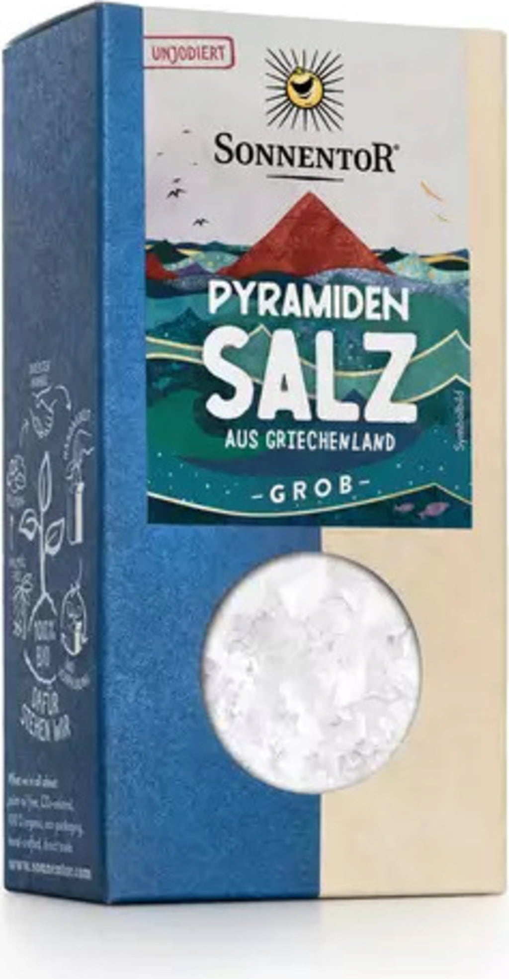 Sal marina pura no yodada de Grecia. Estos curiosos cristales de sal con forma de pirámide son perfectos para dar el toque final a tus platos. Dado que se derrite en la boca muy rápidamente, es ideal como "sal de acabado" para poner en la mesa. Ideal para ensaladas, bowls, panes y postres de caramelo. Nuestro consejo para usar esta sal: ¡menos es más! Porque esta sal es bastante intensa y por eso es mejor dosificarla con moderación.