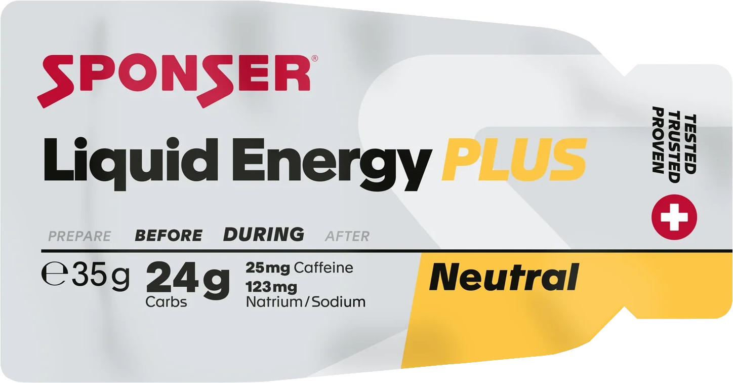 Liquid Energy Plus de Sponser es un gel energético altamente concentrado que se presenta en un práctico tubo resellable. Su fórmula se basa en una combinación de glucosa, fructosa e isomaltulosa, complementada con cafeína y una pizca de sodio. Su consistencia líquida hace que sea muy fácil de tomar durante la práctica deportiva. El producto prescinde deliberadamente de edulcorantes artificiales y colorantes, y además no contiene lactosa. Su sabor neutro hace que el gel sea agradable de consumir incluso durante esfuerzos intensos.