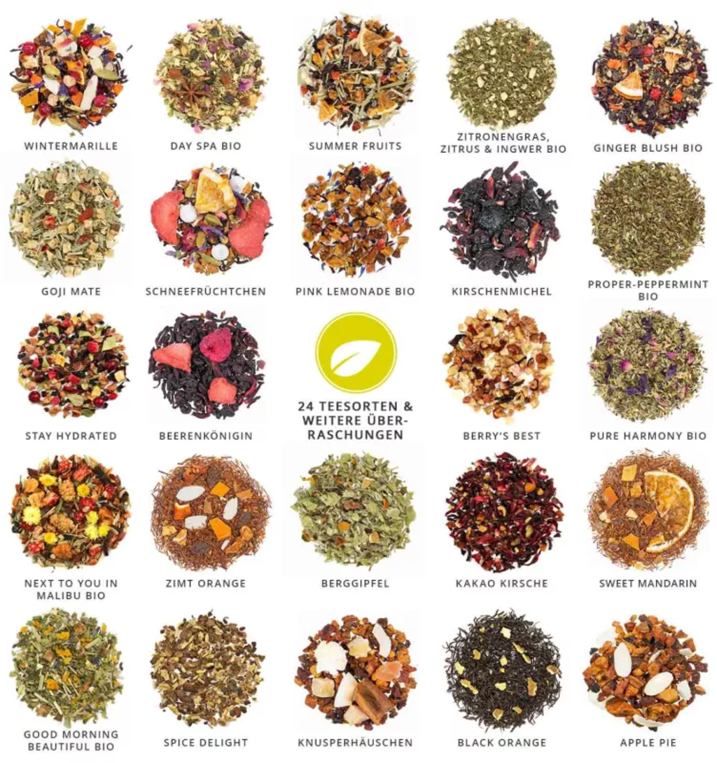 Con este bonito calendario de Adviento, la época prenavideña se convierte realmente en el momento culminante del año, porque en cada una de las 24 cajas te espera un delicioso té o una mezcla de infusiones. Además de las mezclas sueltas, las cajitas también contienen otras sorpresas relacionadas con el mundo del té, para hacer que la Nochebuena sea aún más mágica. Las mezclas, todas diferentes entre sí, son de la más alta calidad ecológica.
