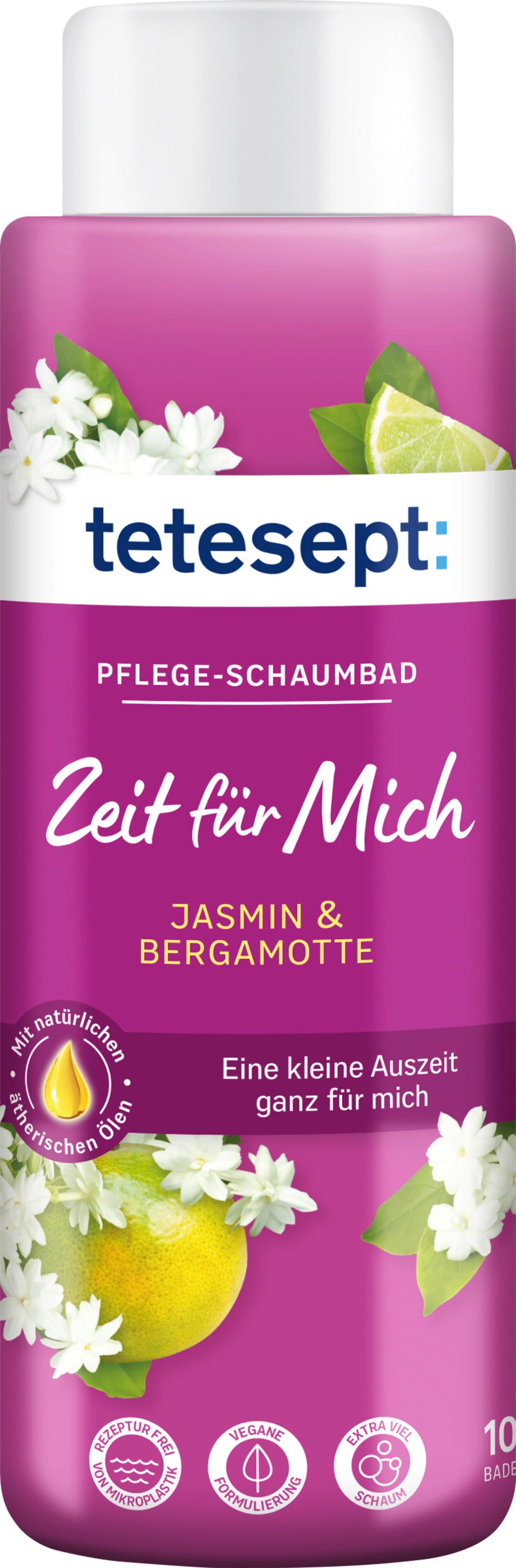 En el frenético ritmo de la vida cotidiana, es importante tomarse descansos conscientes y simplemente relajarse. La Espuma de Baño - Tiempo para Mí de tetesept ofrece el apoyo perfecto. Su suave espuma dura mucho tiempo y proporciona a la piel un cuidado extra, mientras que el aroma de las flores de jazmín y el aceite de bergamota completan a la perfección la experiencia del baño.