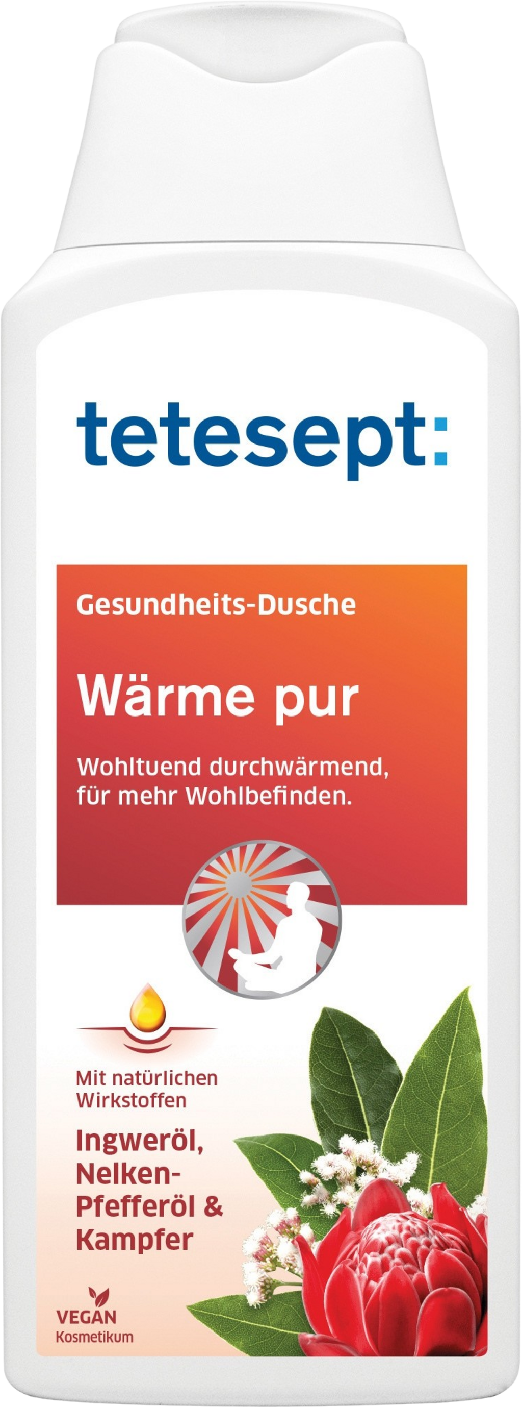 Especialmente en los meses fríos y húmedos, se tiembla todo el día, ¡y no hay nada mejor que una ducha caliente por la noche! El gel de ducha - Calor Puro de tetesept ofrece el apoyo perfecto. Los aceites esenciales especiados de jengibre, clavo, eucalipto, alcanfor y litsea proporcionan una sensación de calor y una fragancia maravillosa. La fórmula no solo es vegana, sino que también tiene un pH neutro.