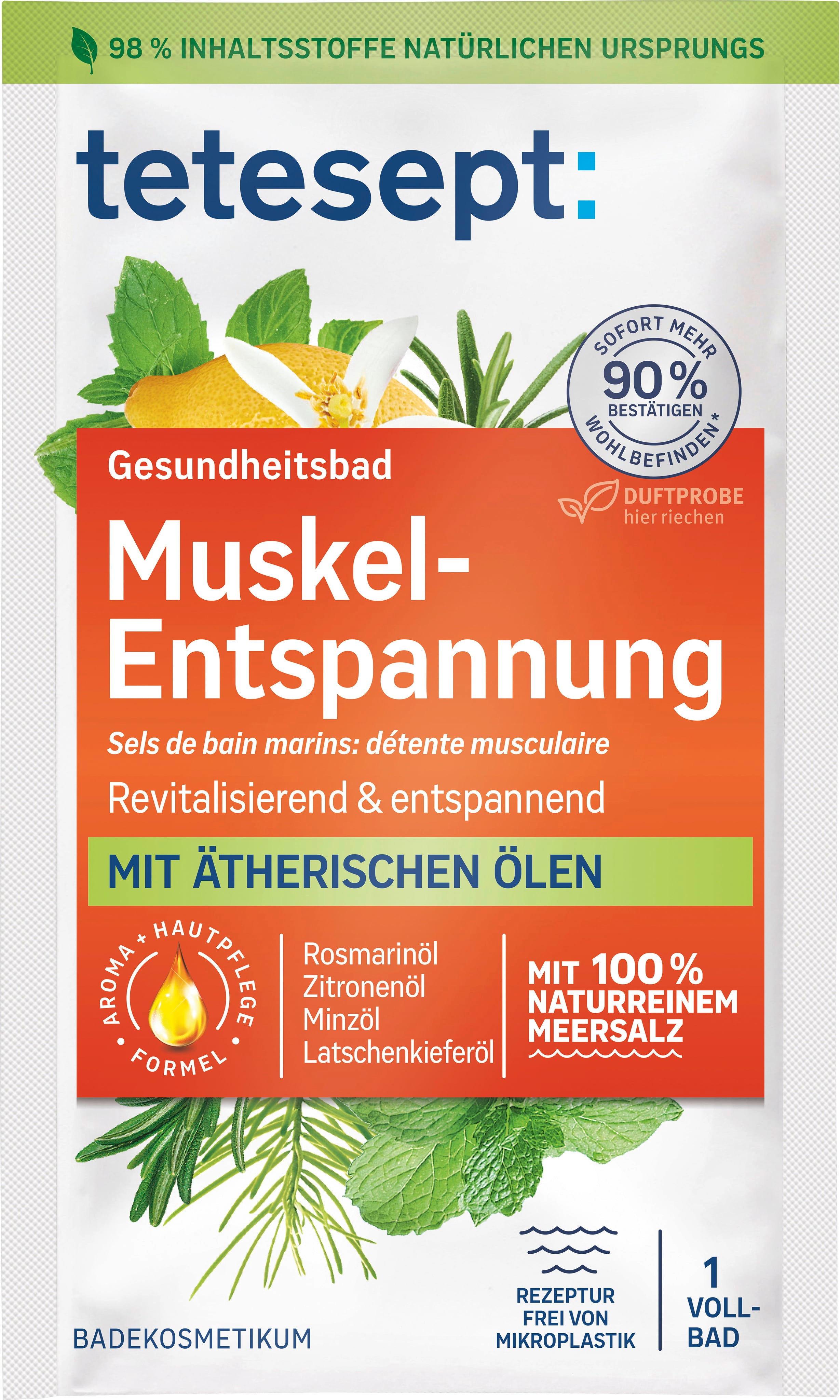 ¿Te has cansado durante la actividad física o una excursión? Entonces, dale un descanso a tu cuerpo y disfruta de la Sal marina - Relajación muscular de tetesept.