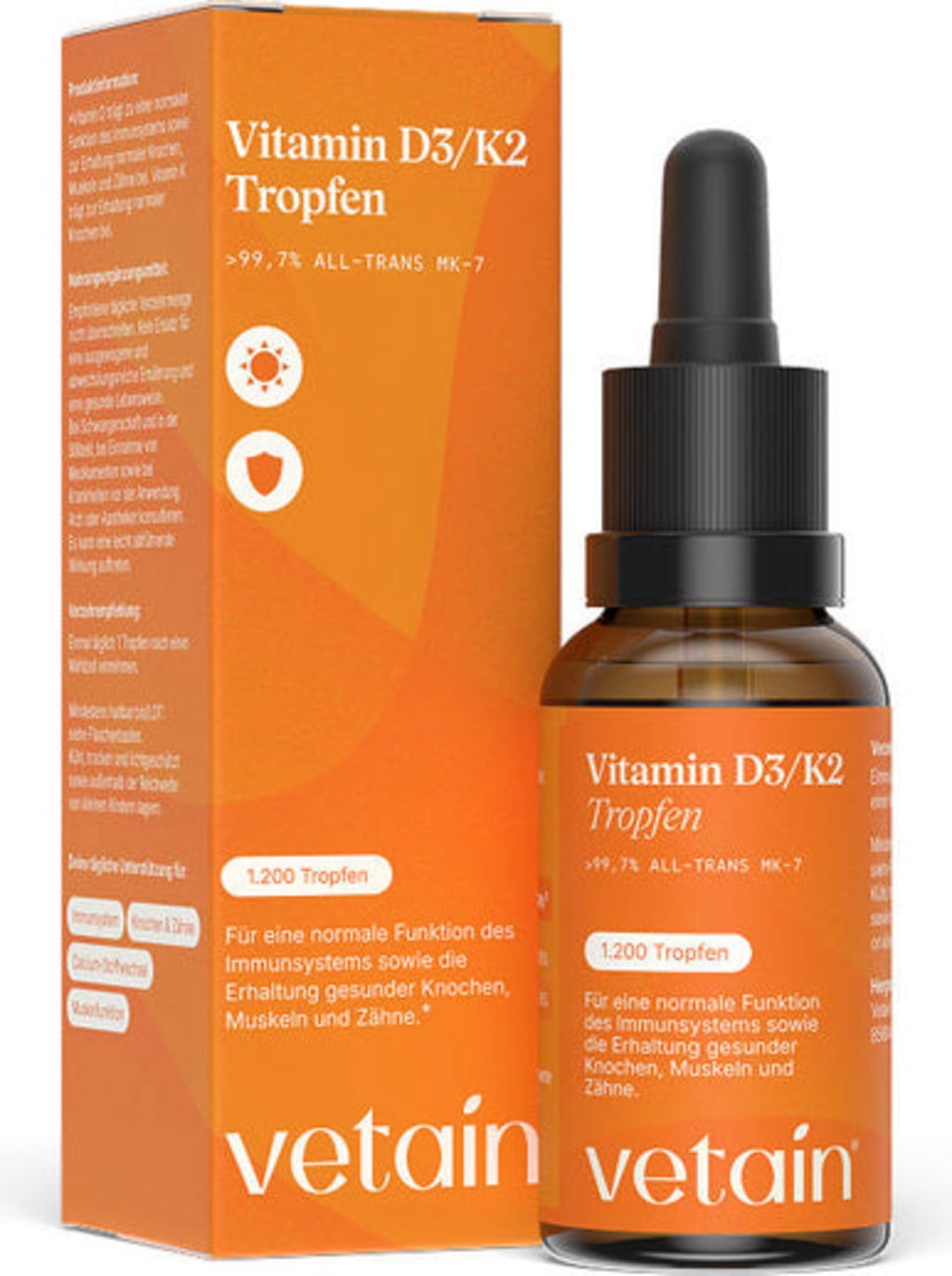 Vetain Vitamina D3/K2 Vegan en Gotas - 1.000 UI, 30 ml